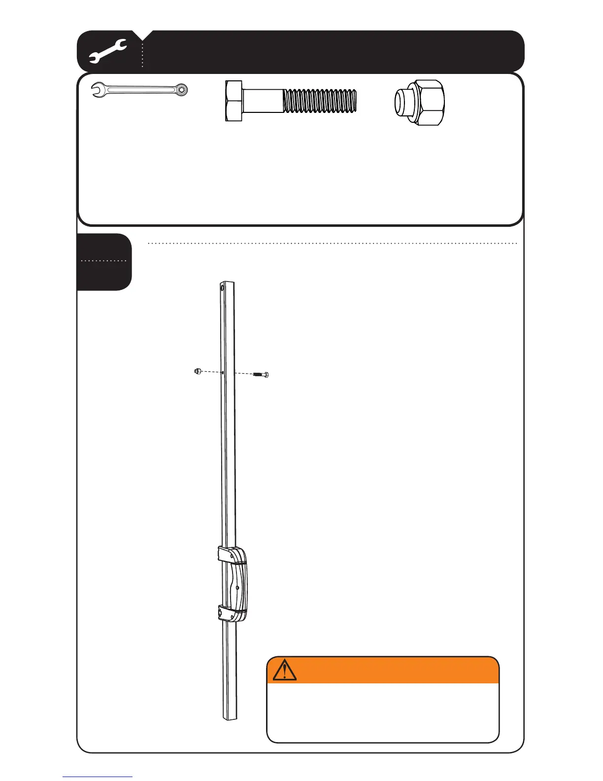Secure the 1/4” x 1 1/4” Hex Bolt to the Outer Tube with the 1/4” Cap Nut (AAU).