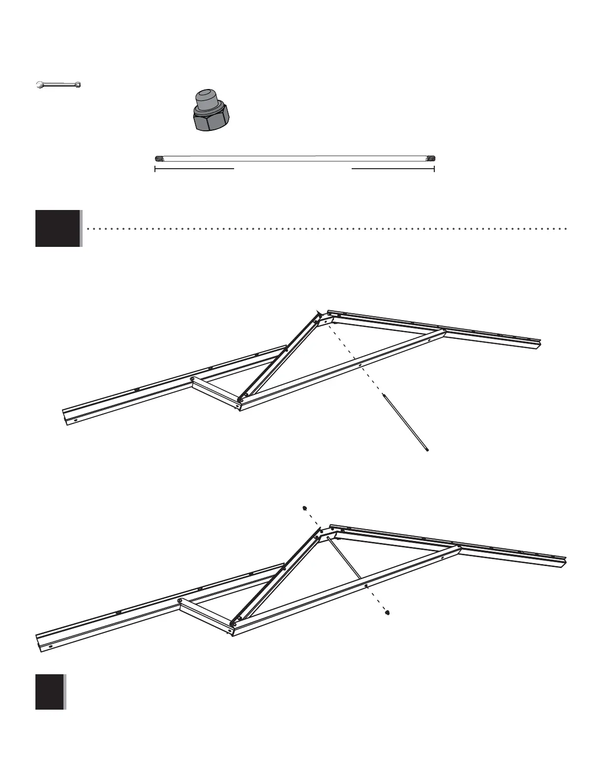 • Slide a Truss Rod (ADH) through the holes in the Brace and Connector. Secure with two Cap Nuts (ADJ).