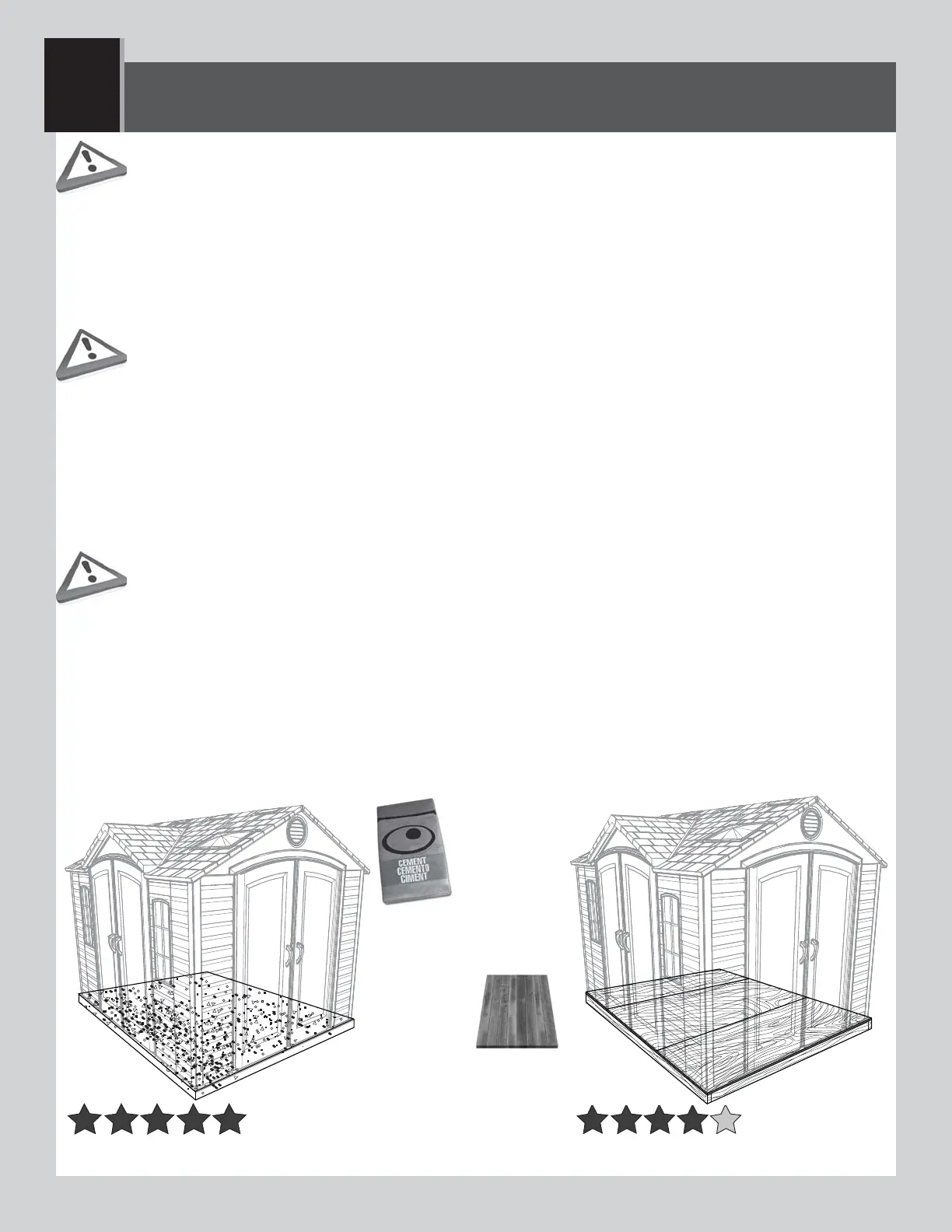 • Es preciso construir una plataforma sobre la cual usted debe ensamblar su caseta. Puede suceder que en su