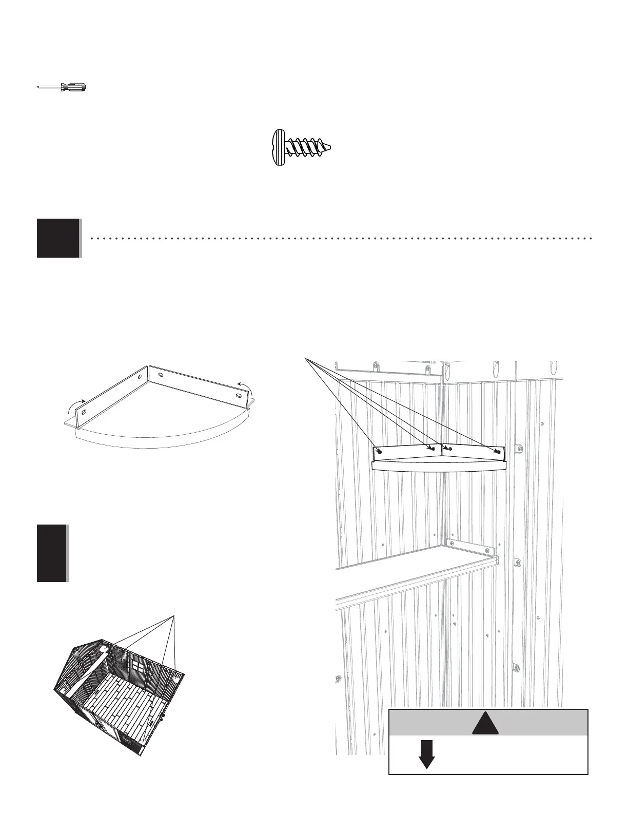 holes in the tabs with those in the Corner Wall Panel. Secure with four (4) Screws (ADZ).