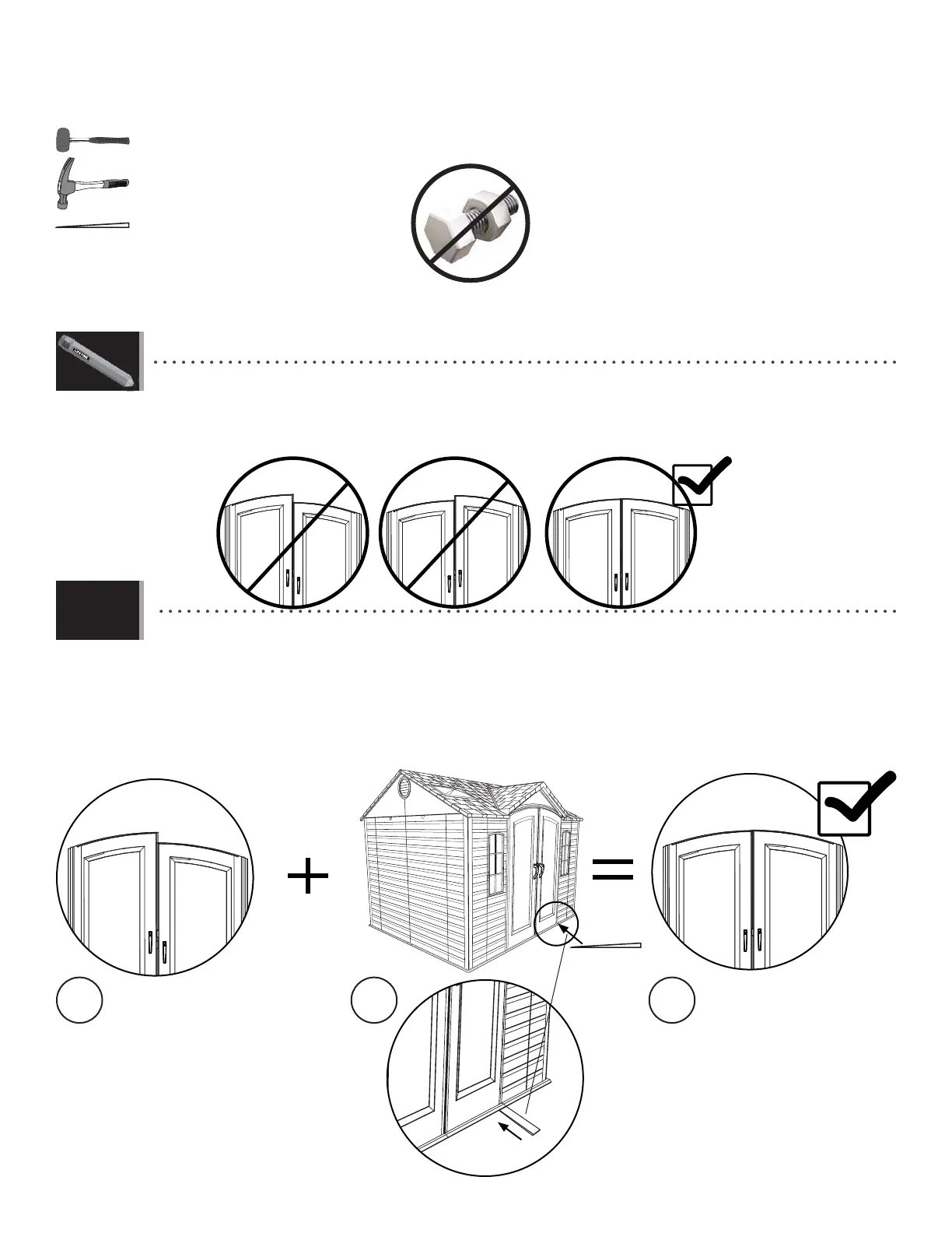 • If the Left Door is higher, insert a Shim (AIX) underneath the bottom, right corner of the Right Door until it’s the same