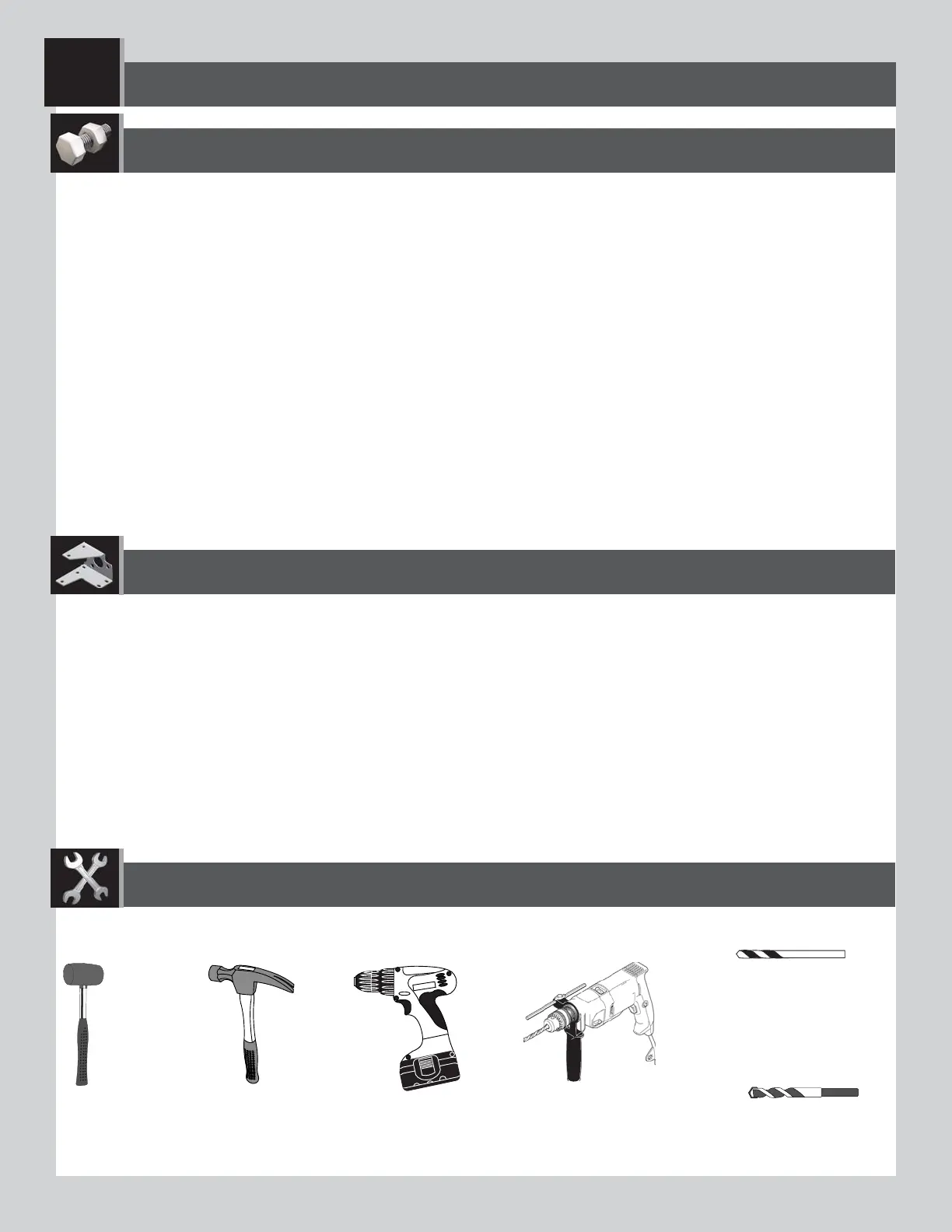 HARDWARE REQUIRED / QUINCAILLERIE REQUISE / HERRAJE REQUERIDO