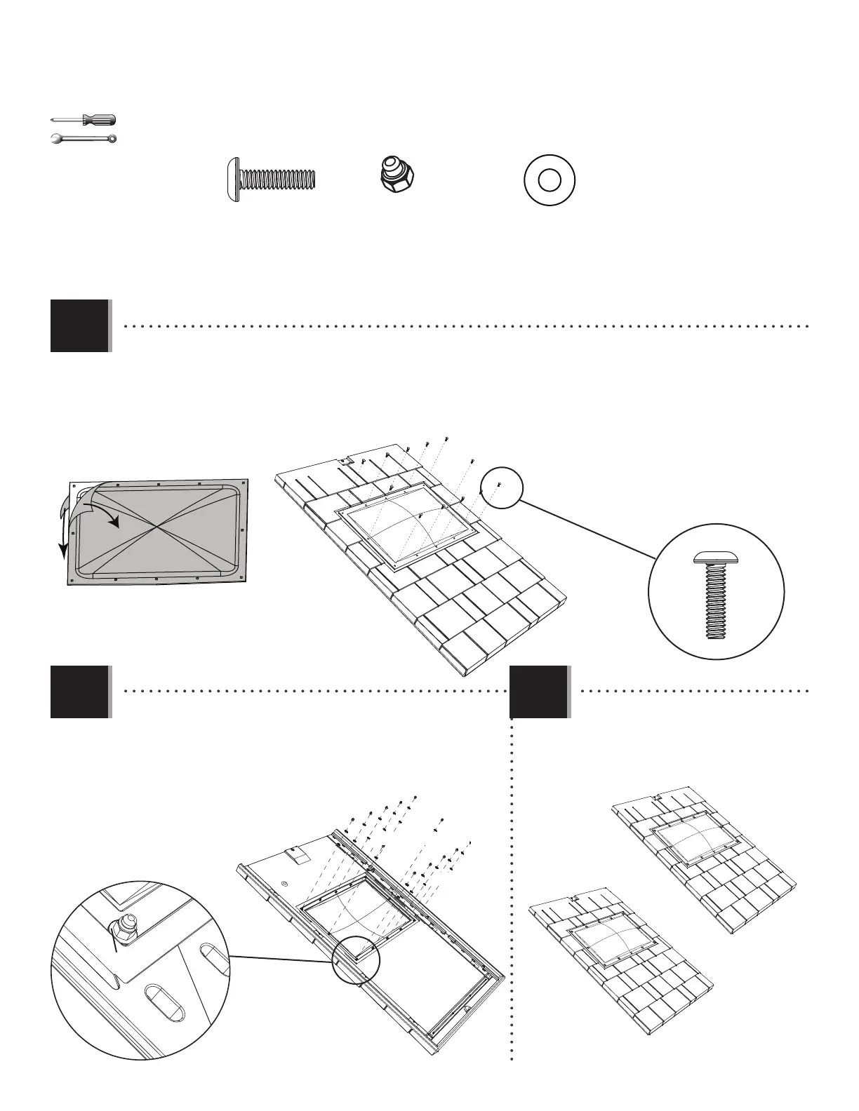 • Bien attacher la lucarne à l’aide de la quincaillerie incluse. Ne pas