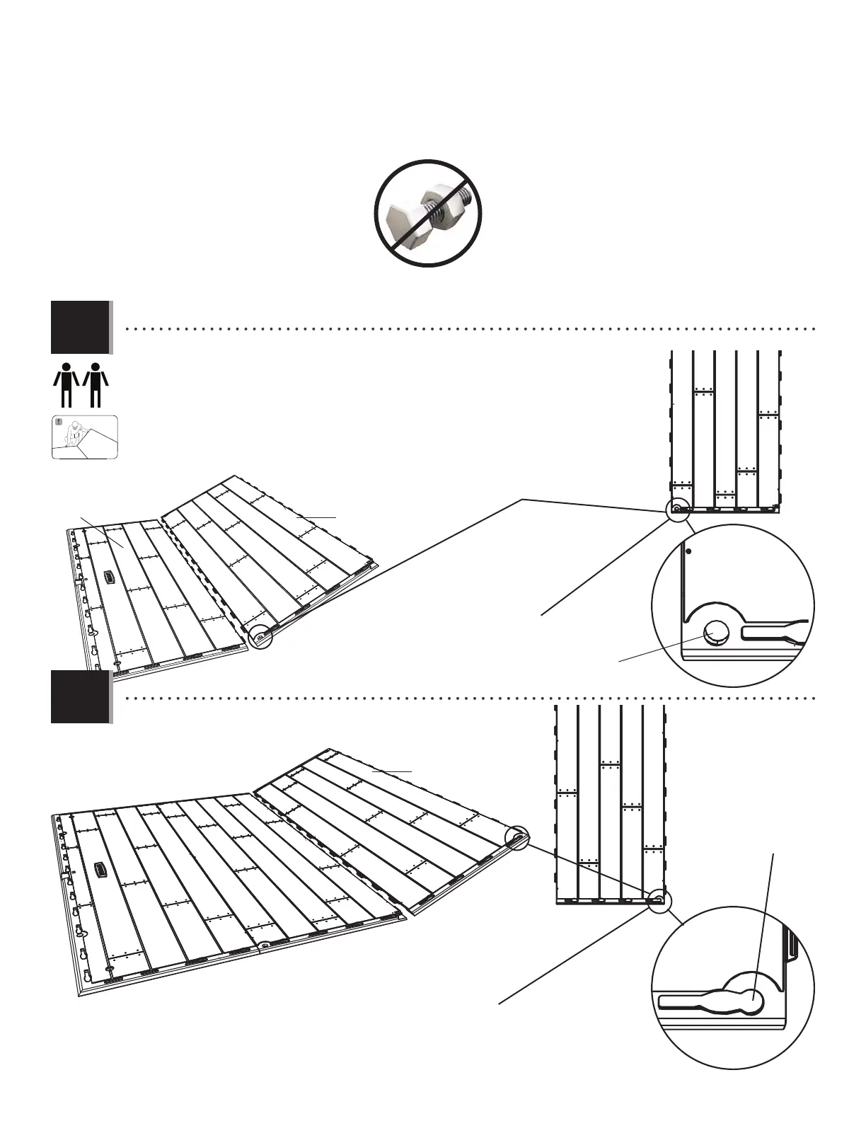 • Coloque un panel de piso interior (CUD) a un ángulo y deslice las lenguetas a lo largo del