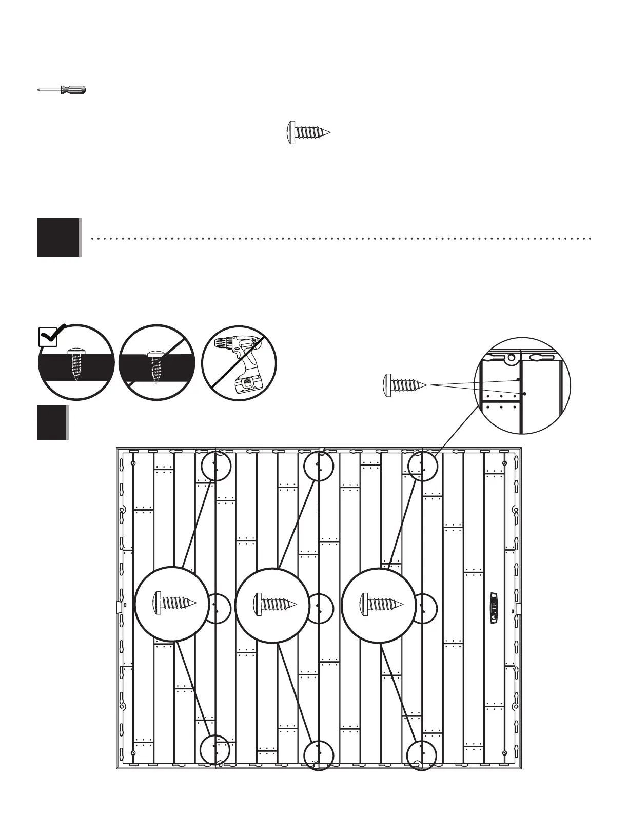 Note: These are not anchoring screws. Their purpose is to fasten together the Floor Panels.