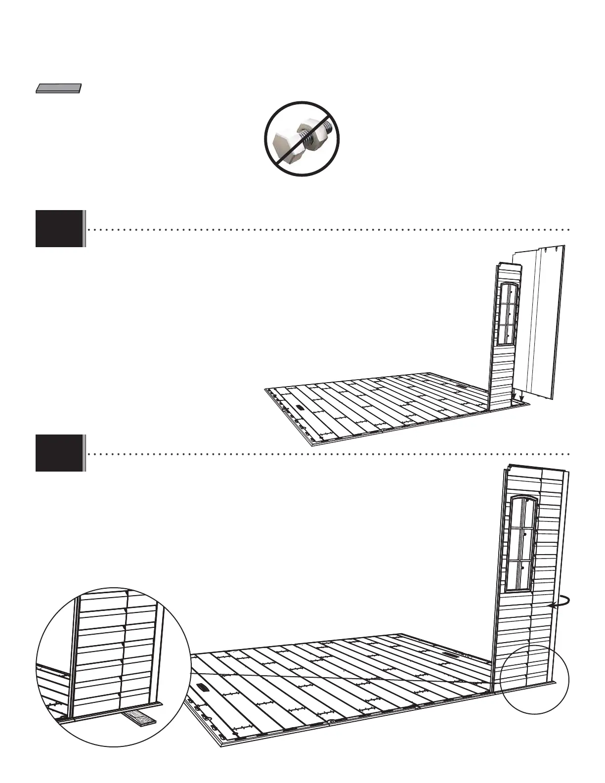 • Bend the Corner Panel as shown, and pull down to snap the tabs into the fi rst two slots