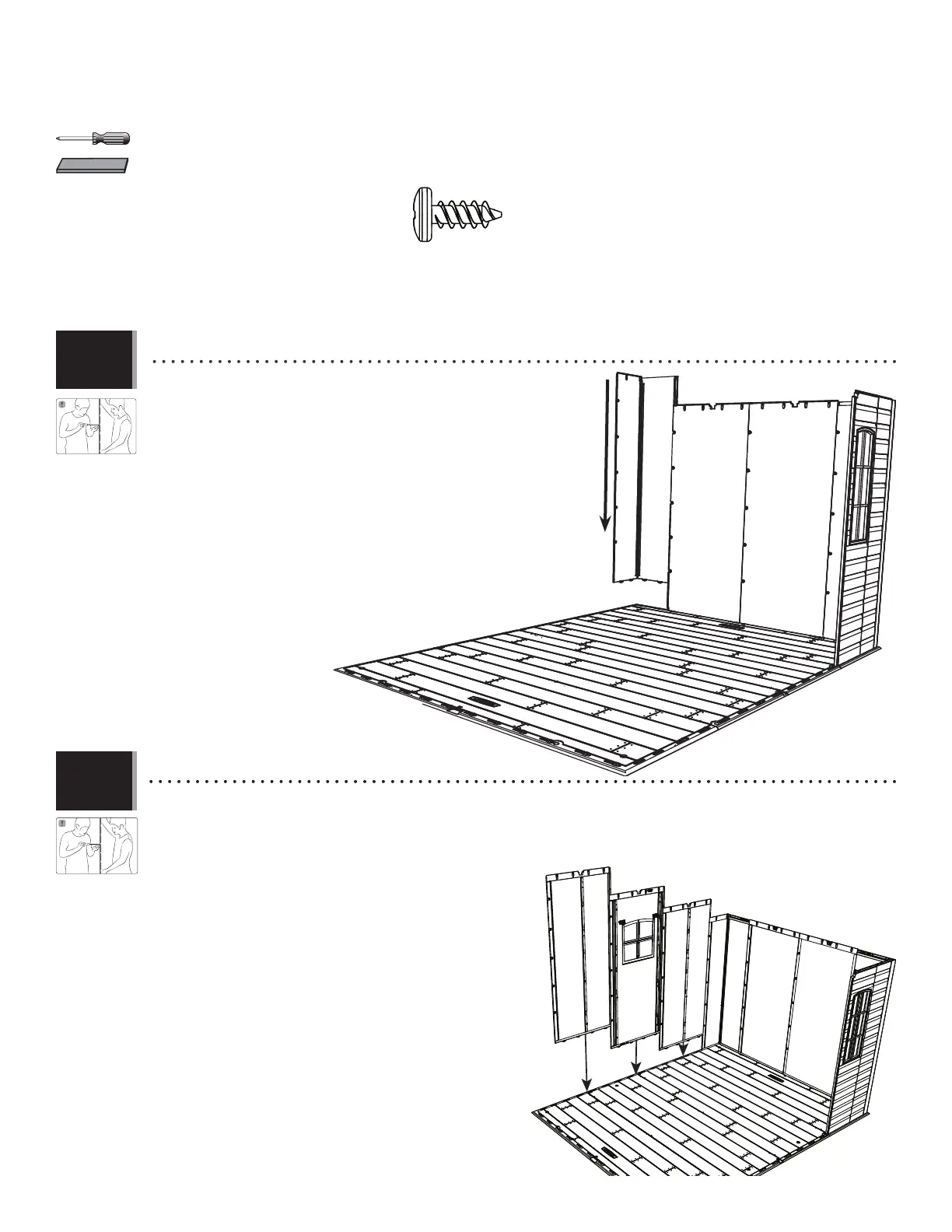 • Insert two (2) Wall Panels (AHD) with the Wall Channel Supports (AFM) and the Window Wall Panel (AHH) along the rear