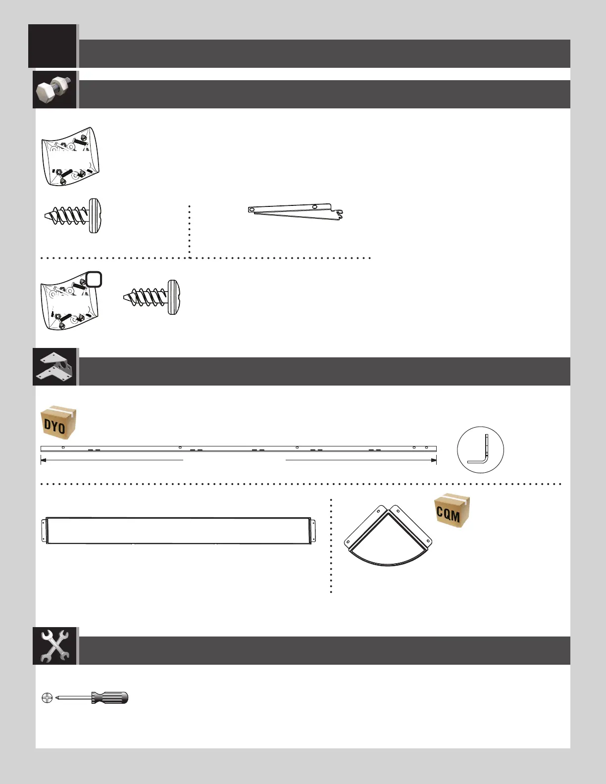 HARDWARE REQUIRED / QUINCAILLERIE REQUISE / HERRAJE REQUERIDO