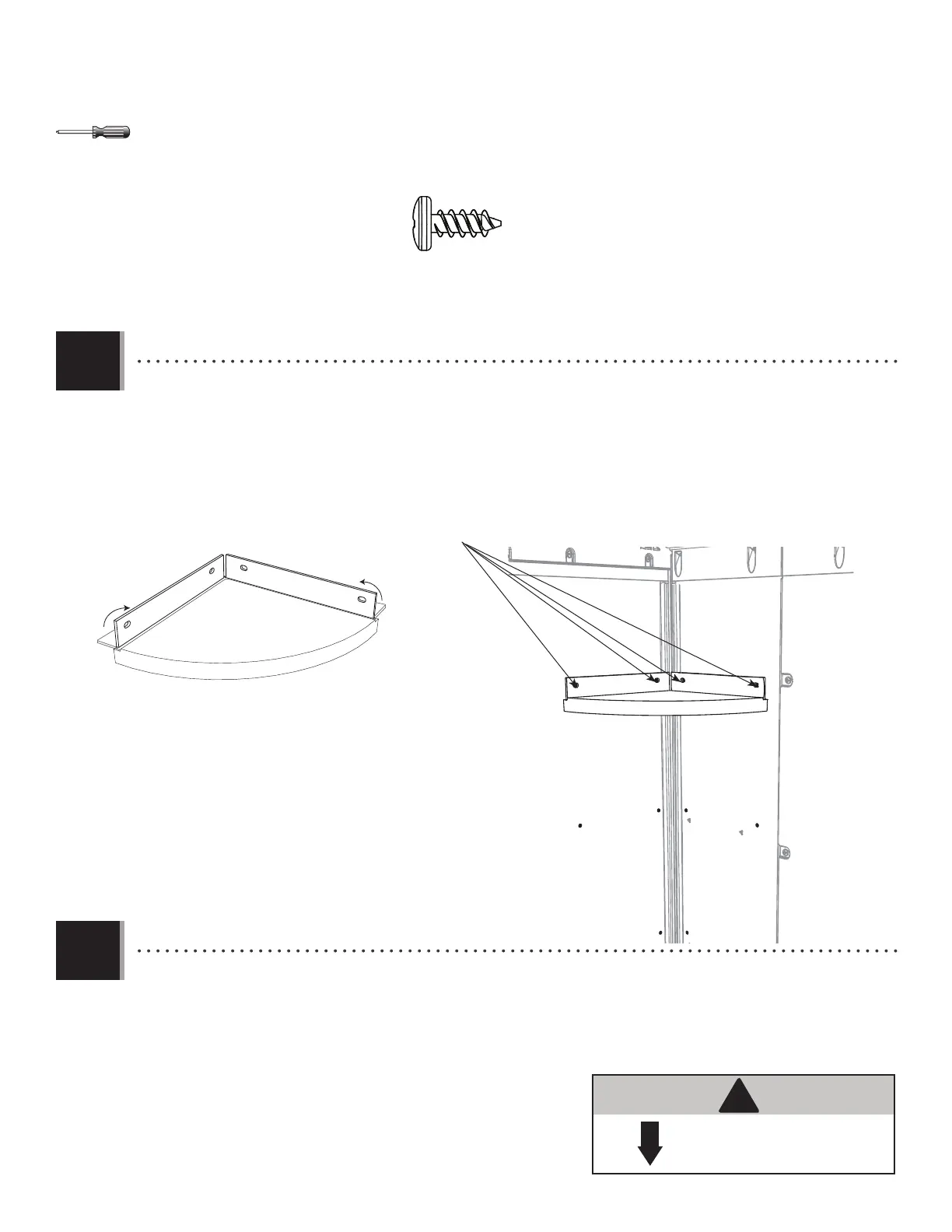 l’étagère angulaire, et alignez les trous avec ceux du panneau mural angulaire. Attachez l’étagère au panneau à