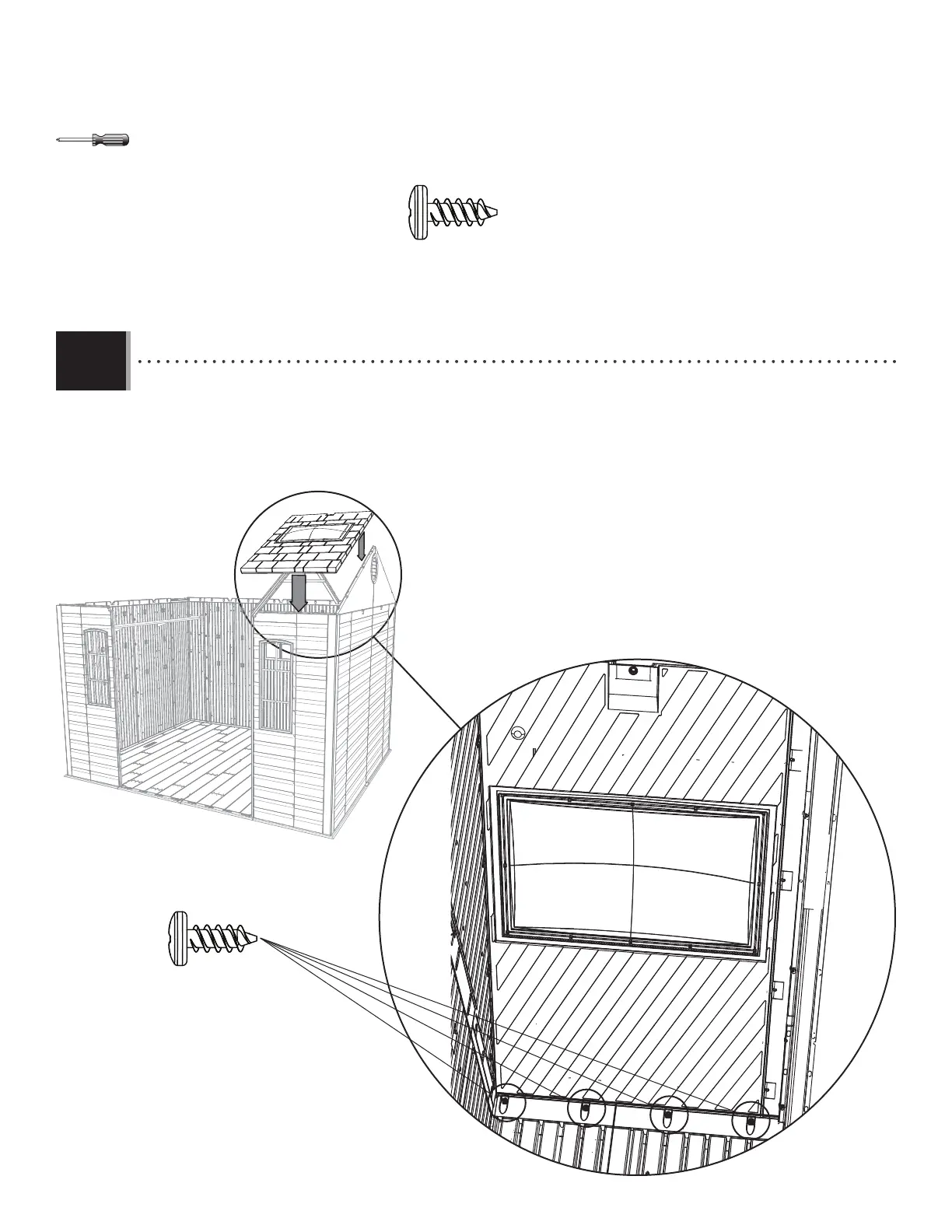 • Align the four holes in the Wall Panel with those at the bottom of the Roof Panel, and insert four (4) Screws (ADZ) to