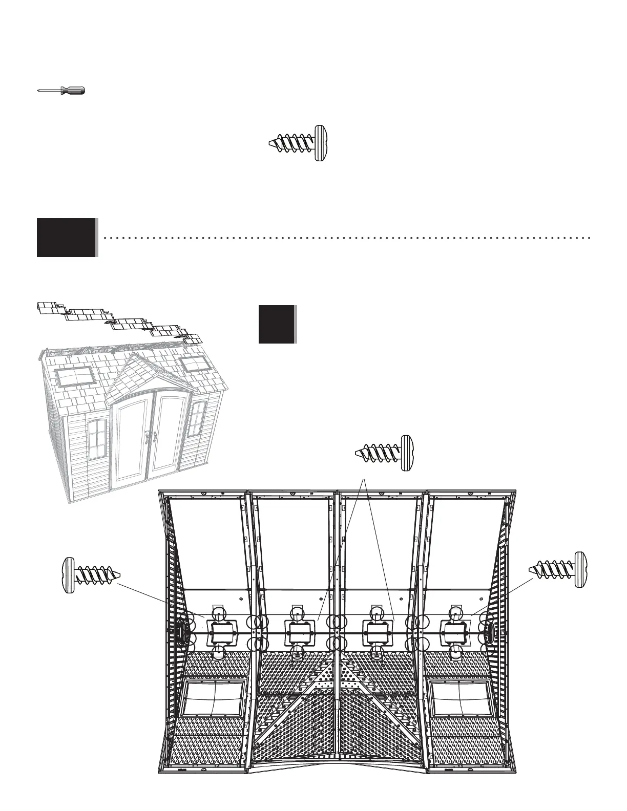 • Starting at the right, attach the Roof Caps to the shed using the hardware provided.
