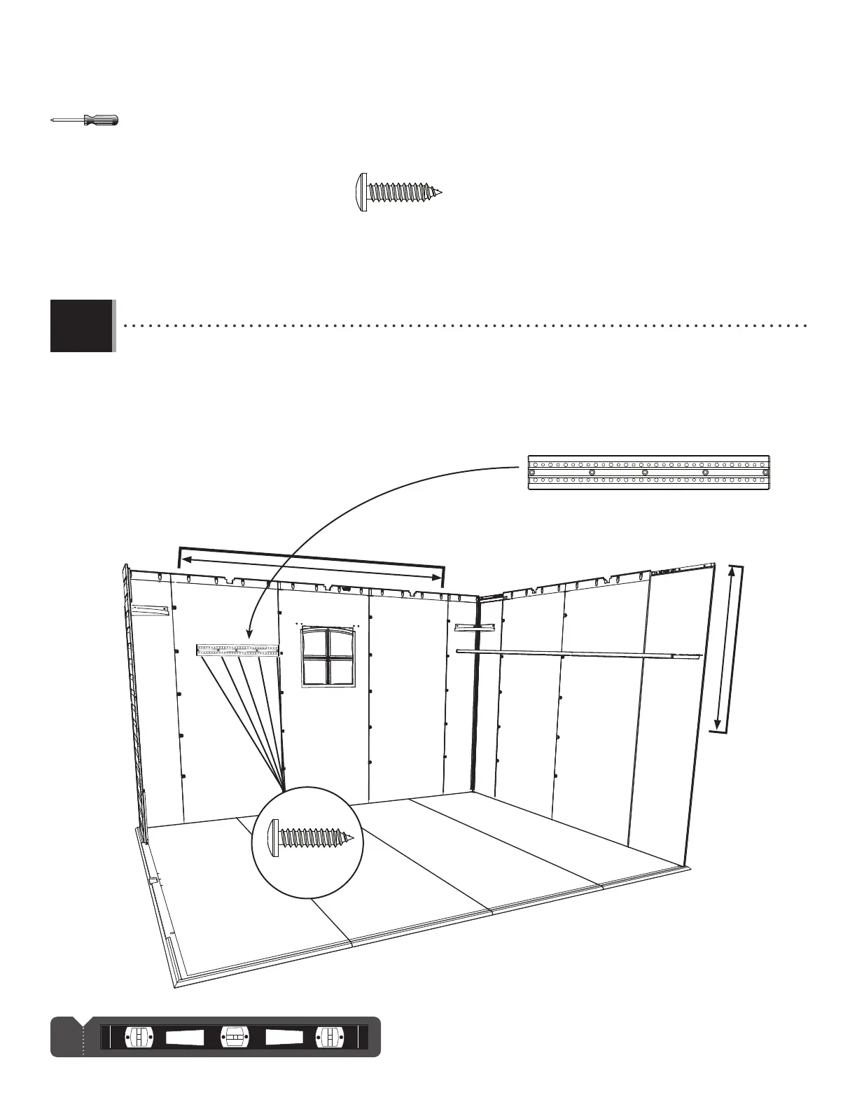 • Attach the Pegboard Strip (AFU) to a Wall Panel using fi ve (5) Screws (ADW). Align the holes on non-groove areas of