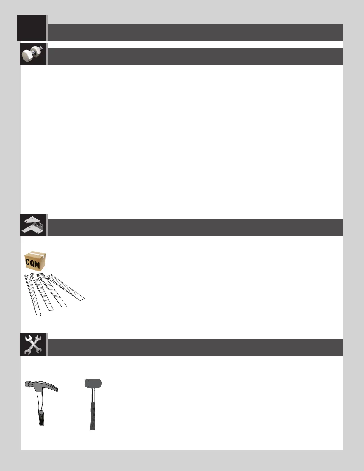 HARDWARE REQUIRED / QUINCAILLERIE REQUISE / HERRAJE REQUERIDO