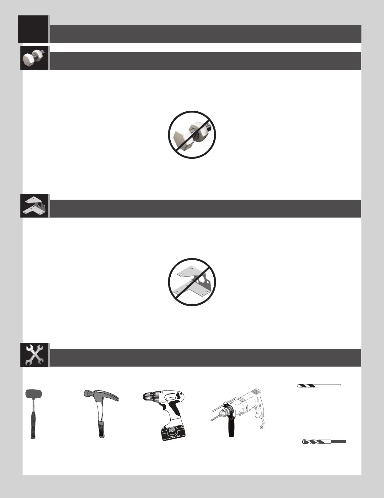 HARDWARE REQUIRED / QUINCAILLERIE REQUISE / HERRAJE REQUERIDO