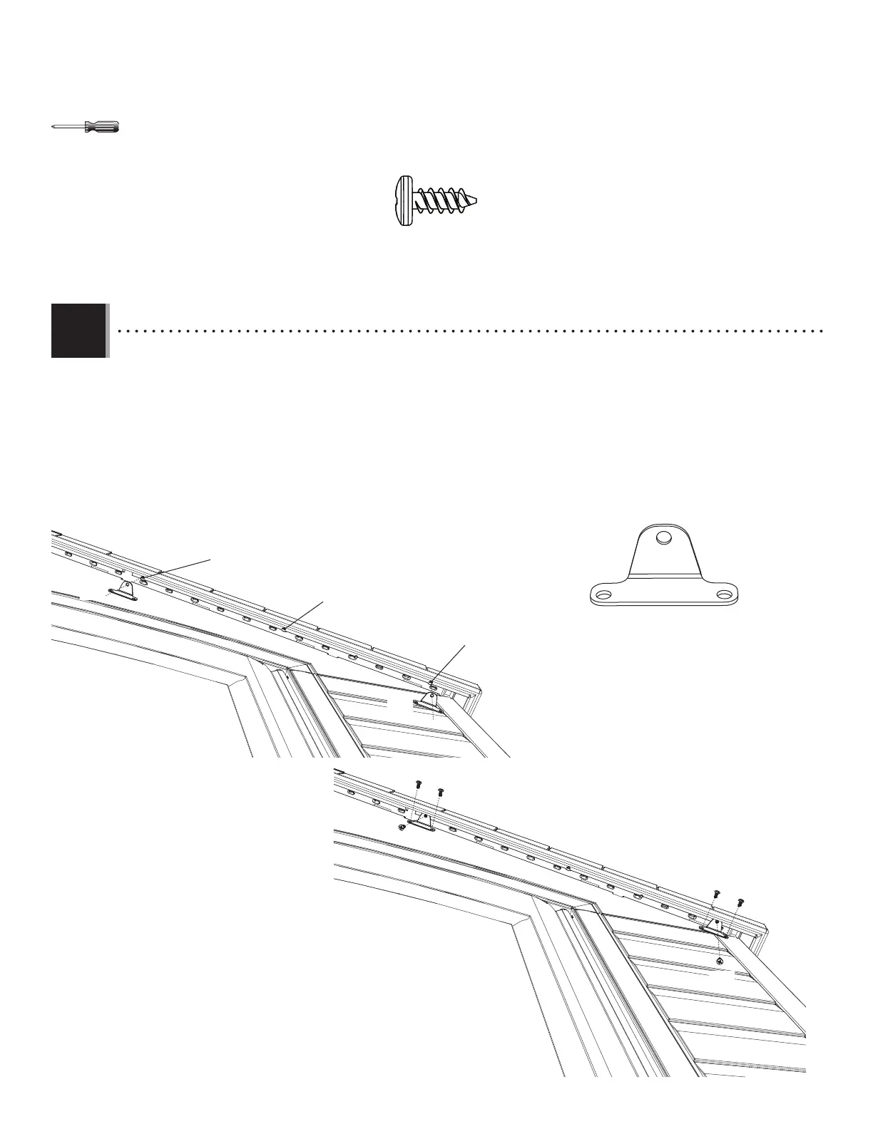 right side of the roof and entry gable using three (3) screws (ADZ) per roof bracket. Repeat this step for the left end of the