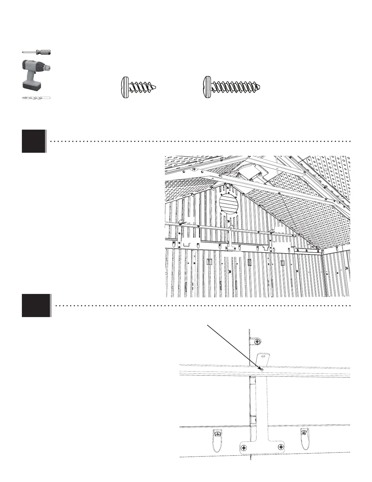 • Secure the two outer support brackets to the rear wall and gable using two (2) screws (ADV) and eight (8) screws (ADZ).