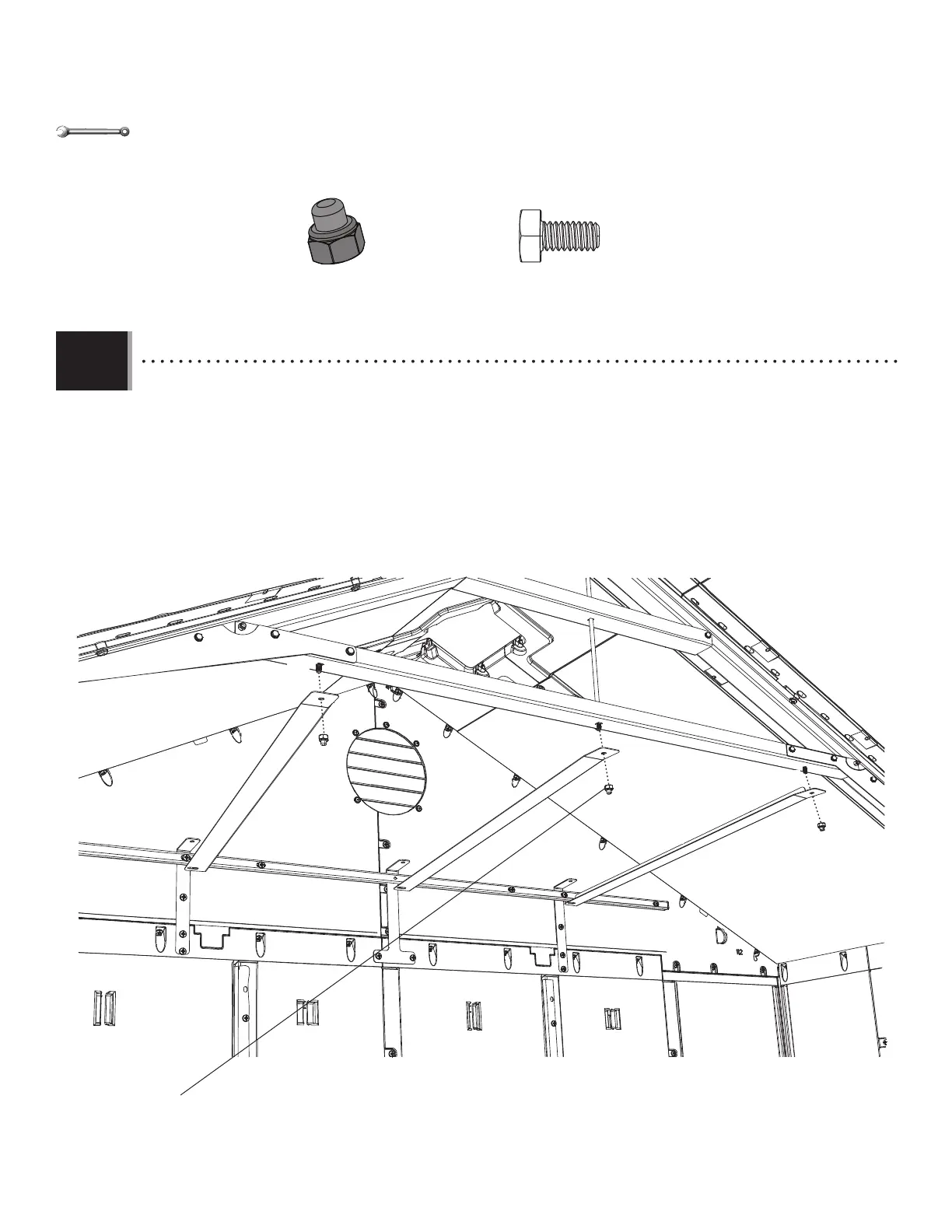 • Insérer un boulon hexagonal (BES) dans le trou carré et le trou récemment percé dans le support de ferme le plus