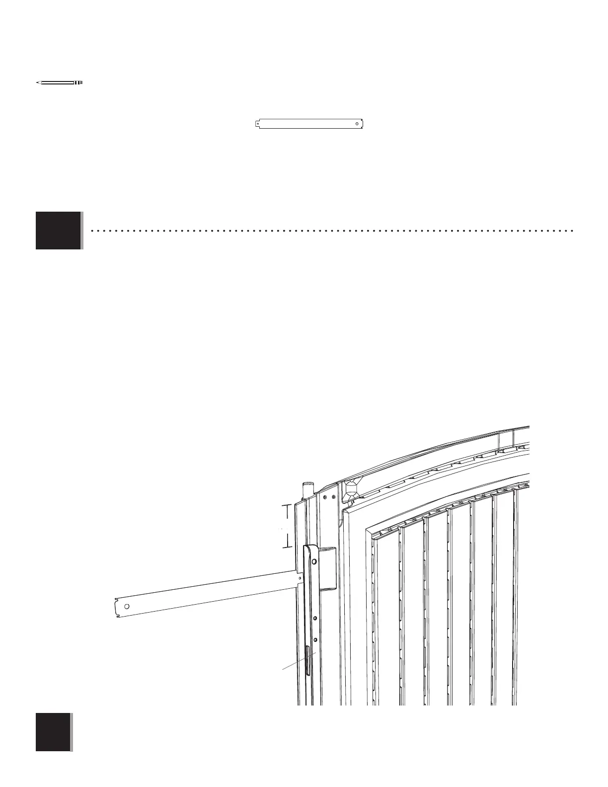 Remarque : L’indicateur de distance aide à aligner le support vertical de la porte par-dessus le tube de charnière en la puerta.