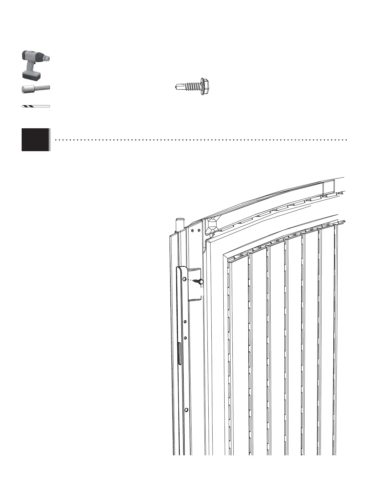 percer à travers la porte entière. Insérer une vis (BRK) dans le trou supérieur et dans le tube de charnière.