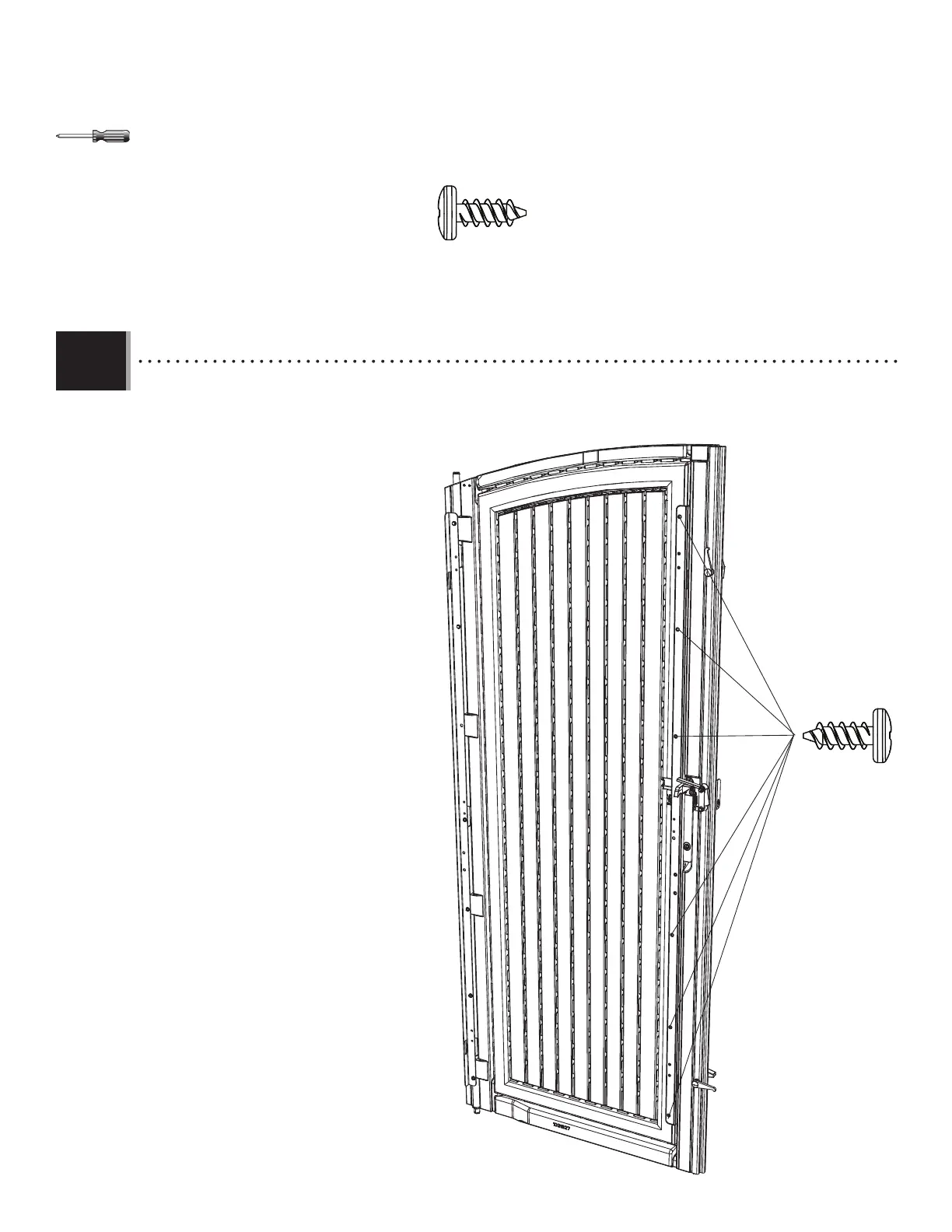 • Secure the vertical door support to the right door using six (6) screws (ADZ).