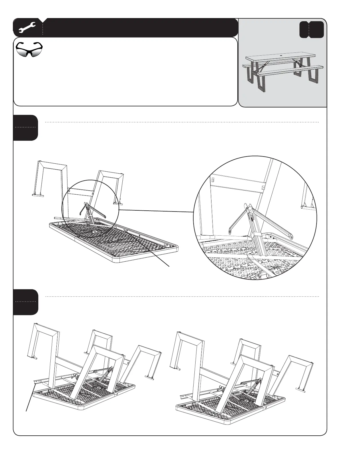 While another adult helps to hold the Assemblies in position, place the holes in the second Table Top channel