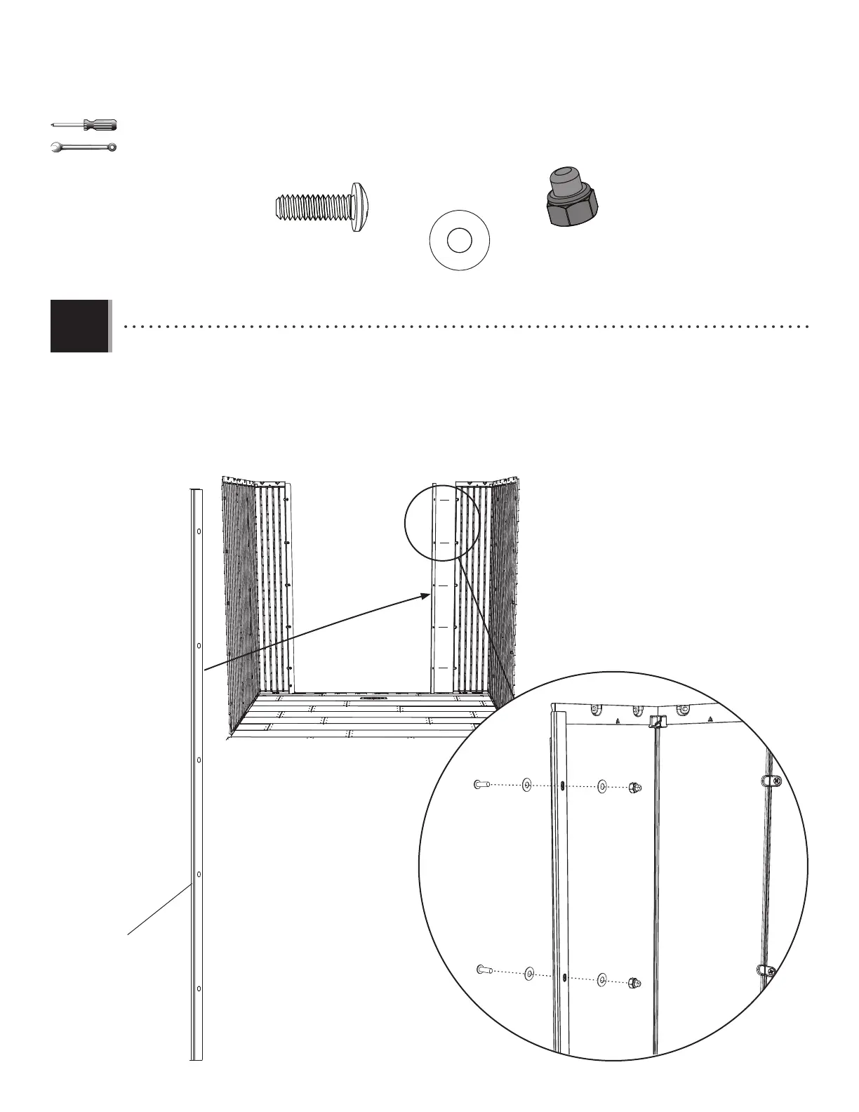 outside of the shed. Align the holes in the Jamb with those in the Corner Wall Panel. Secure the Jamb to the Panel