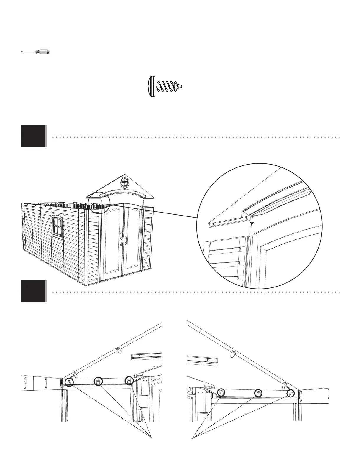 • Secure the entry gable to the shed using six (6) screws (ADZ).