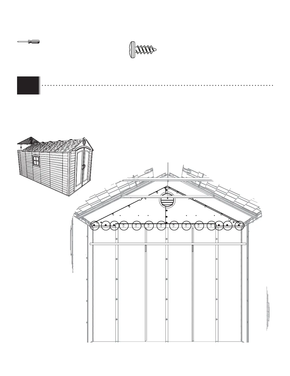 • Attach the rear gable to the shed using fourteen (14) screws (ADZ).