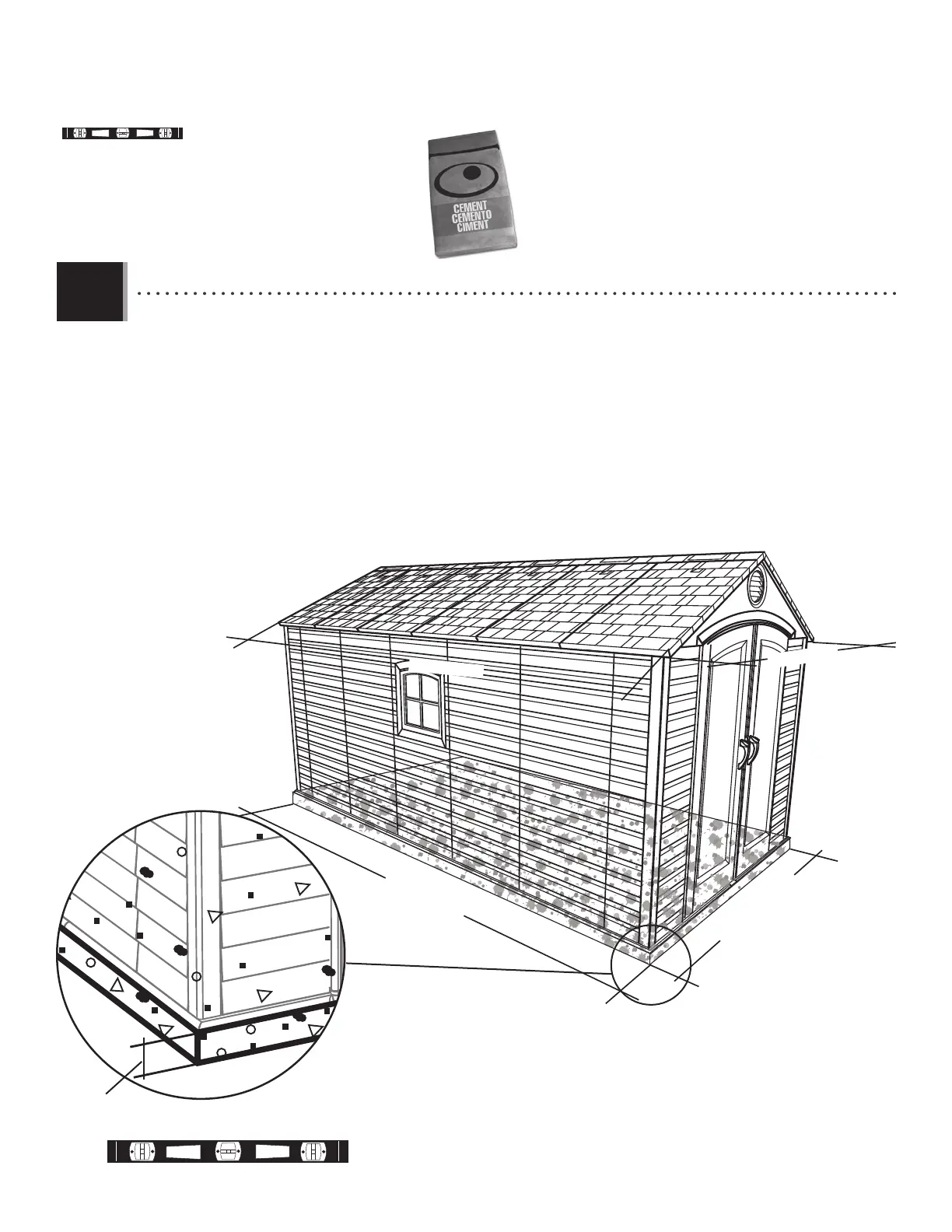 • The concrete should be approximately 4" (≈10,2 cm) thick. The actual dimensions of the shed, at its widest