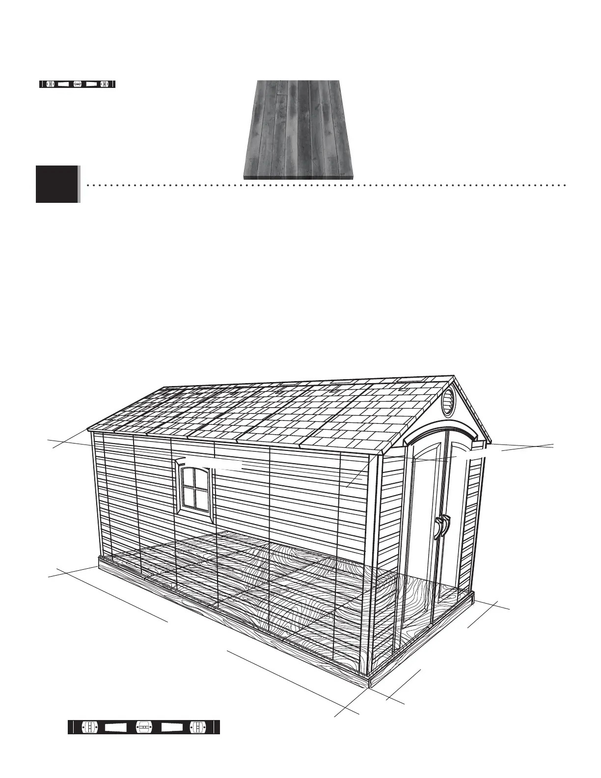 • The actual dimensions of the shed, at its widest and longest points, are 96" x 180" (≈2,44 m x ≈4,57 m). Ensure