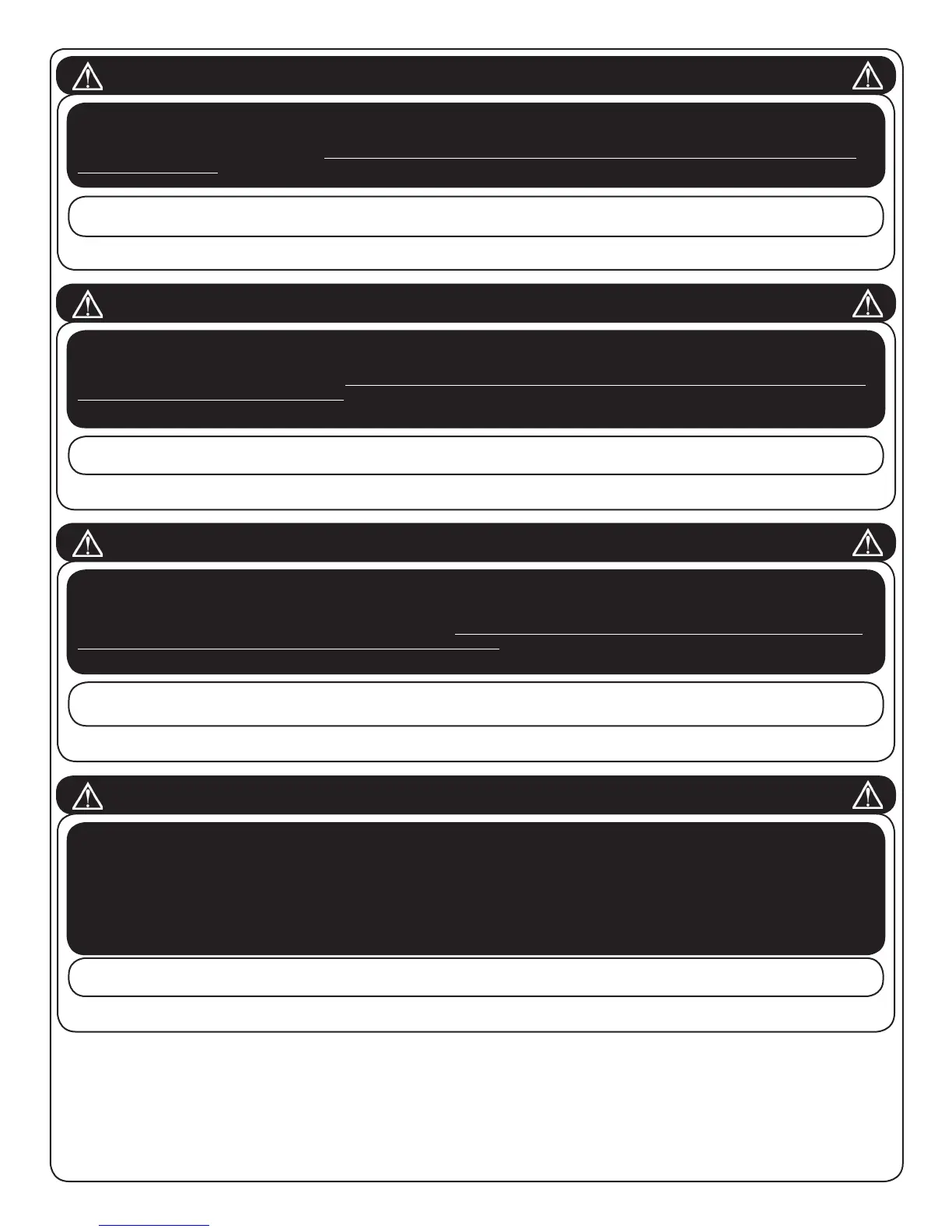 FAILURE TO FOLLOW THESE WARNINGS MAY RESULT IN SERIOUS INJURY OR PROPERTY DAMAGE AND WILL VOID WARRANTY.