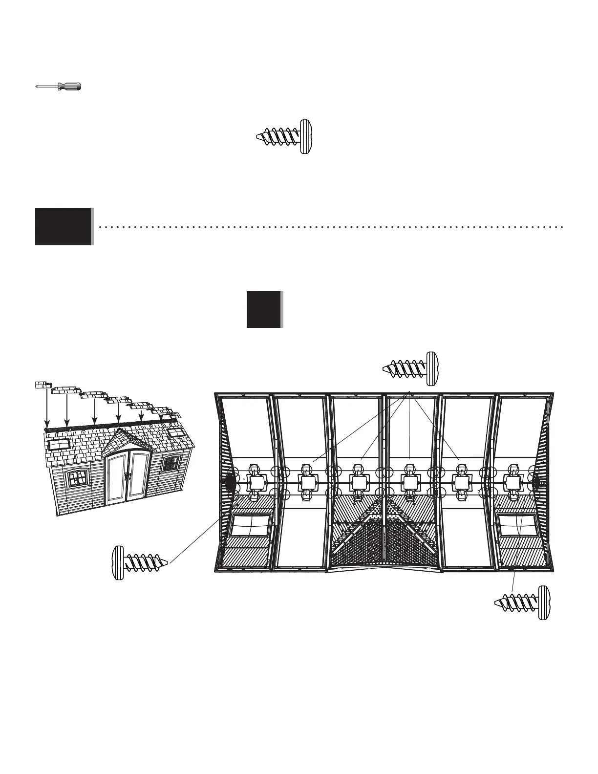 • Starting at the right, attach the Roof Caps to the shed using the hardware included.