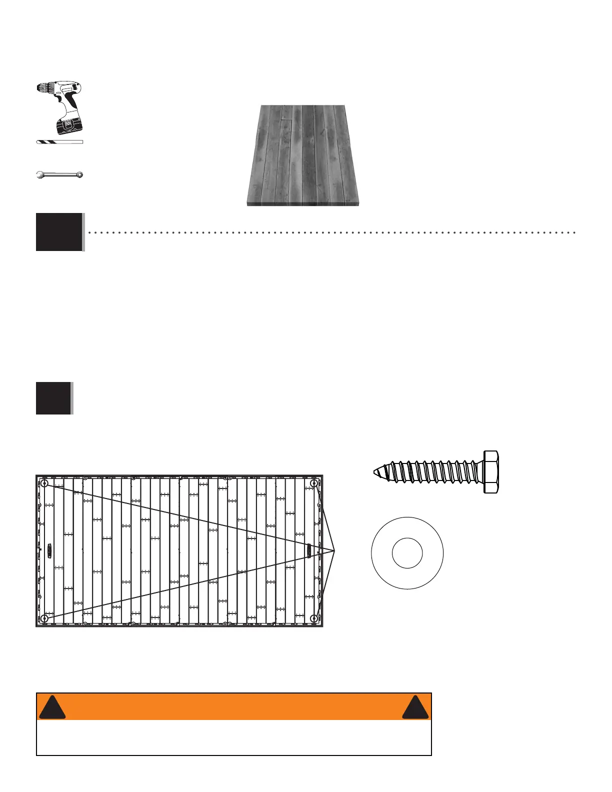 recommend using a drill, 5/16" (8 mm) drill bit, four (4) 3/8" x 1 1/2" (10 mm x 4 cm) Lag Screws and four (4) 3/8"