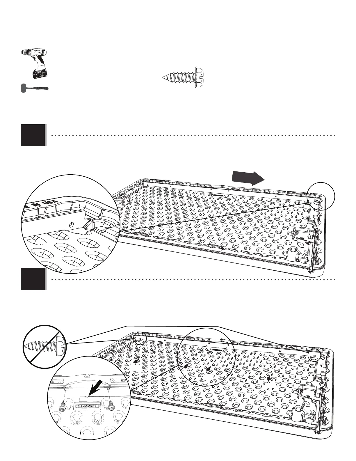 little bit larger than the hole. Use an electric drill to help insert the Screws, but do not overtighten.