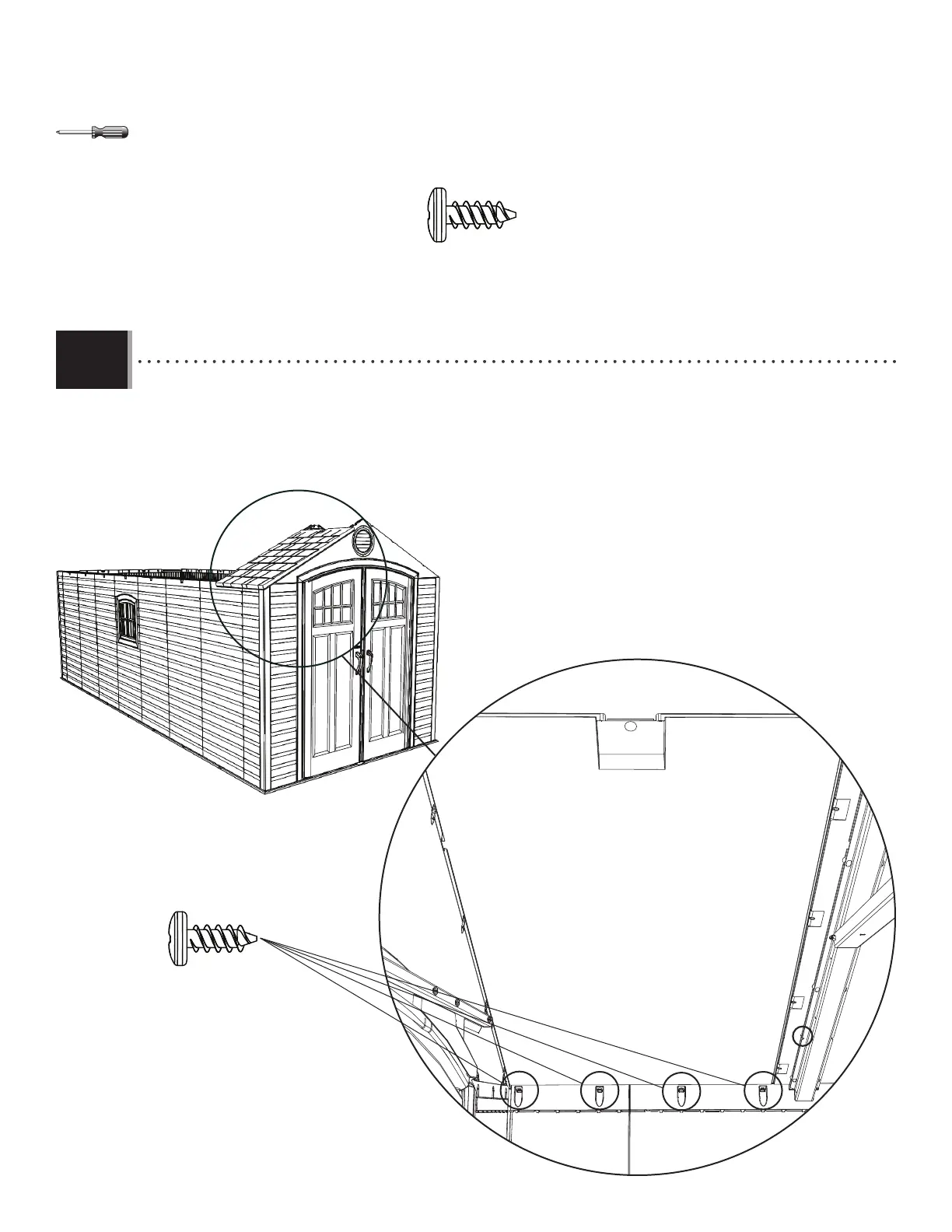 • Align the four holes in the Wall Panel with those at the bottom of the Roof Panel, and insert four (4) Screws (ADZ)