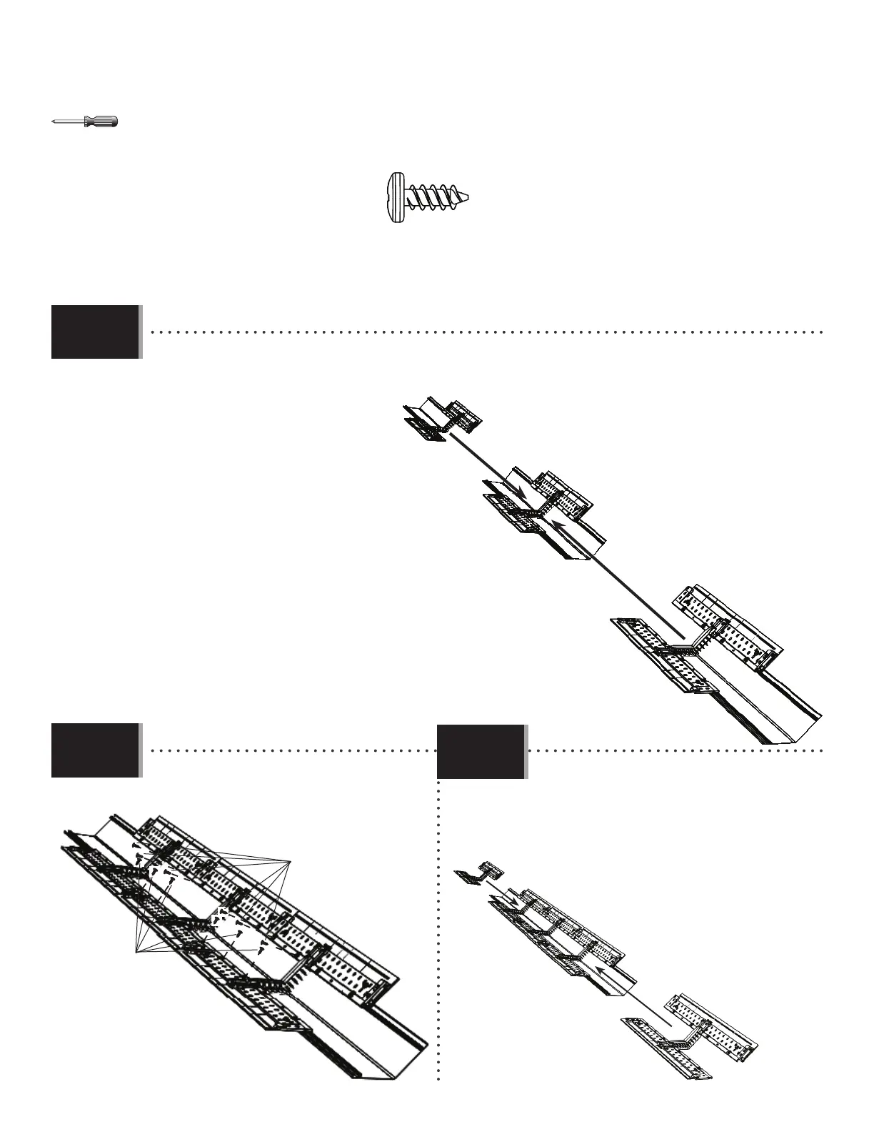 • Slide the two Skylight Assemblies from steps 10.16–10.17 to the Connector and Extensions from steps