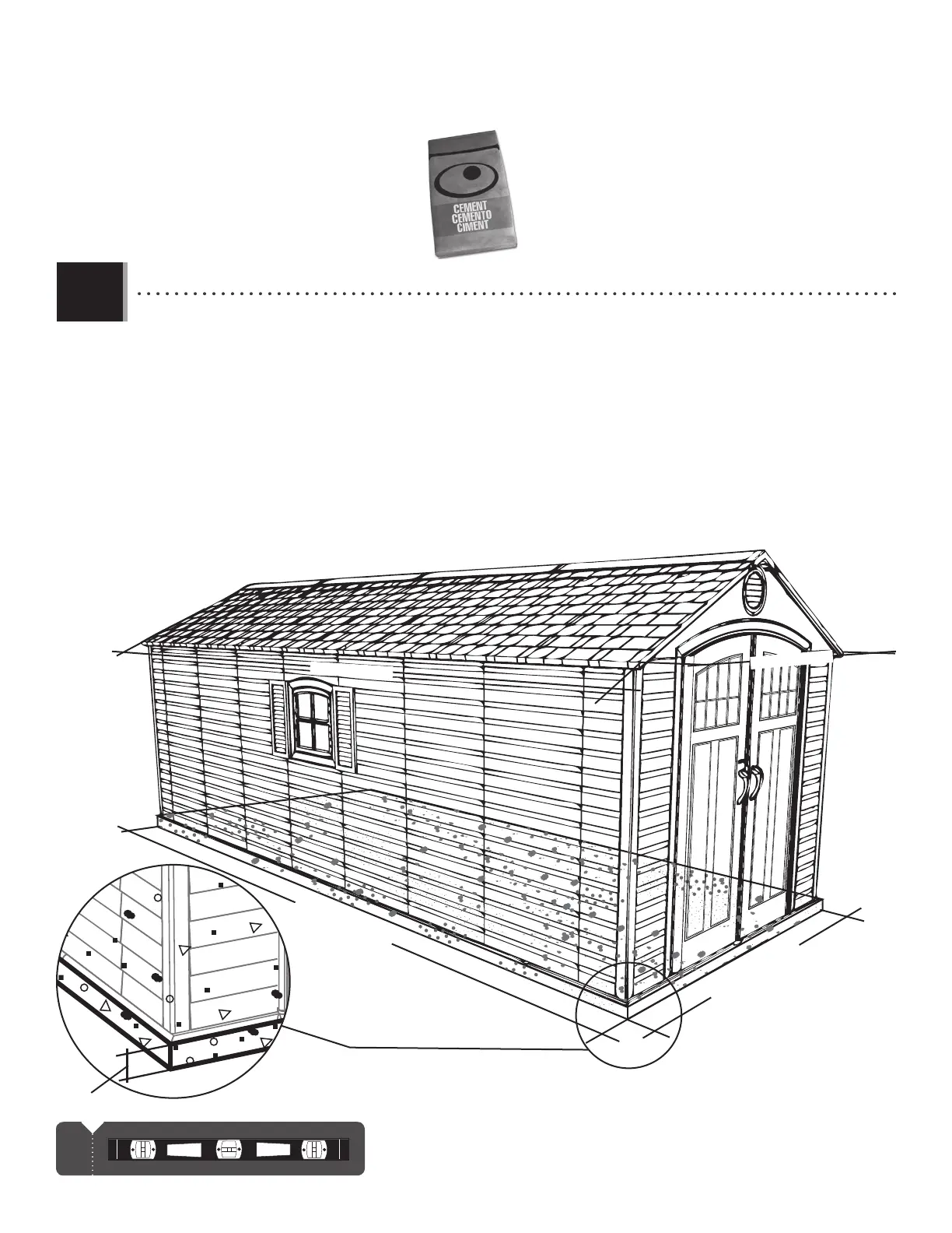 • El concreto debe tener, por lo menos, 10,2 cm (4") de espesor. Las dimensiones reales de la caseta, a sus puntos