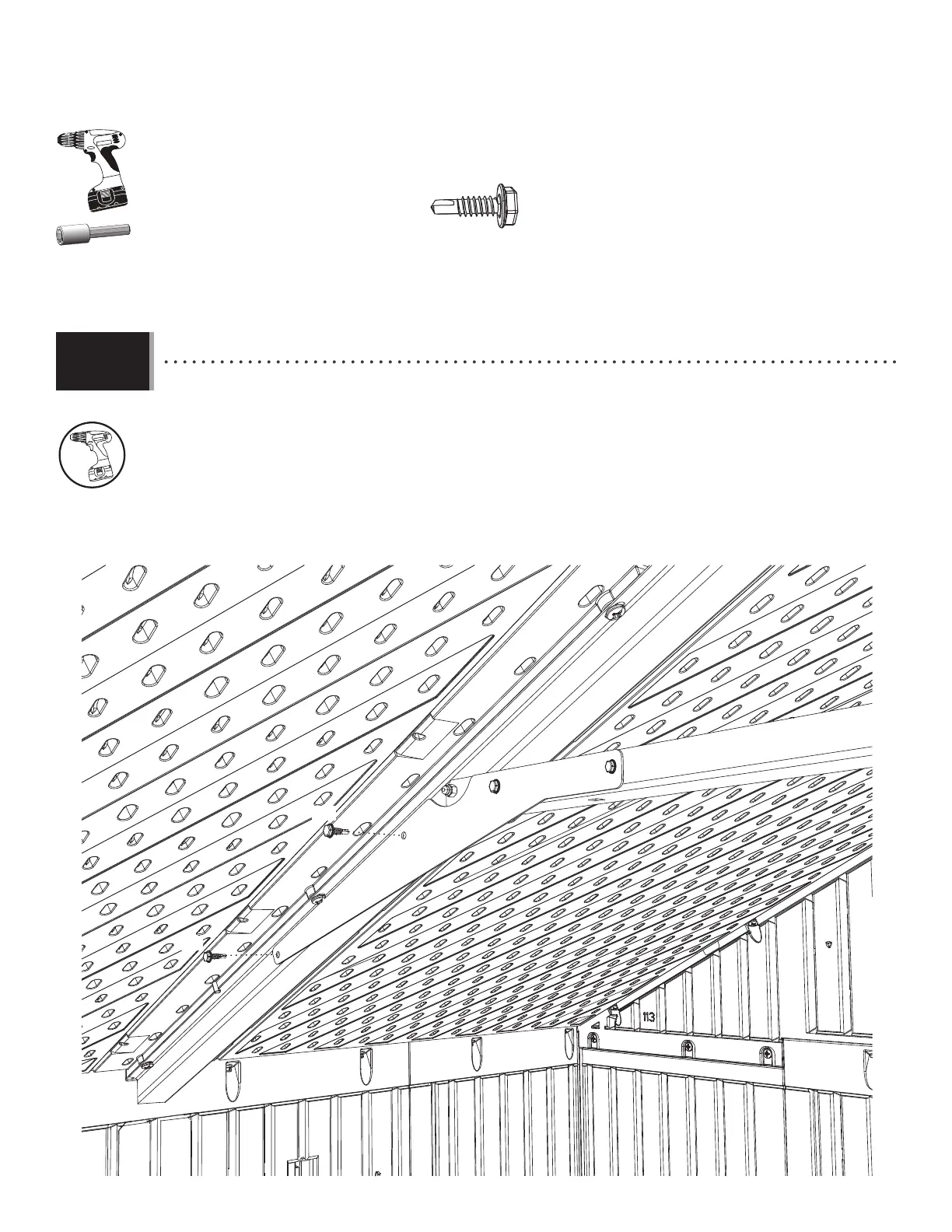 • Use an electric Drill to insert two Screws (BRK) through the Gusset and into the Gutter Channel. These are the
