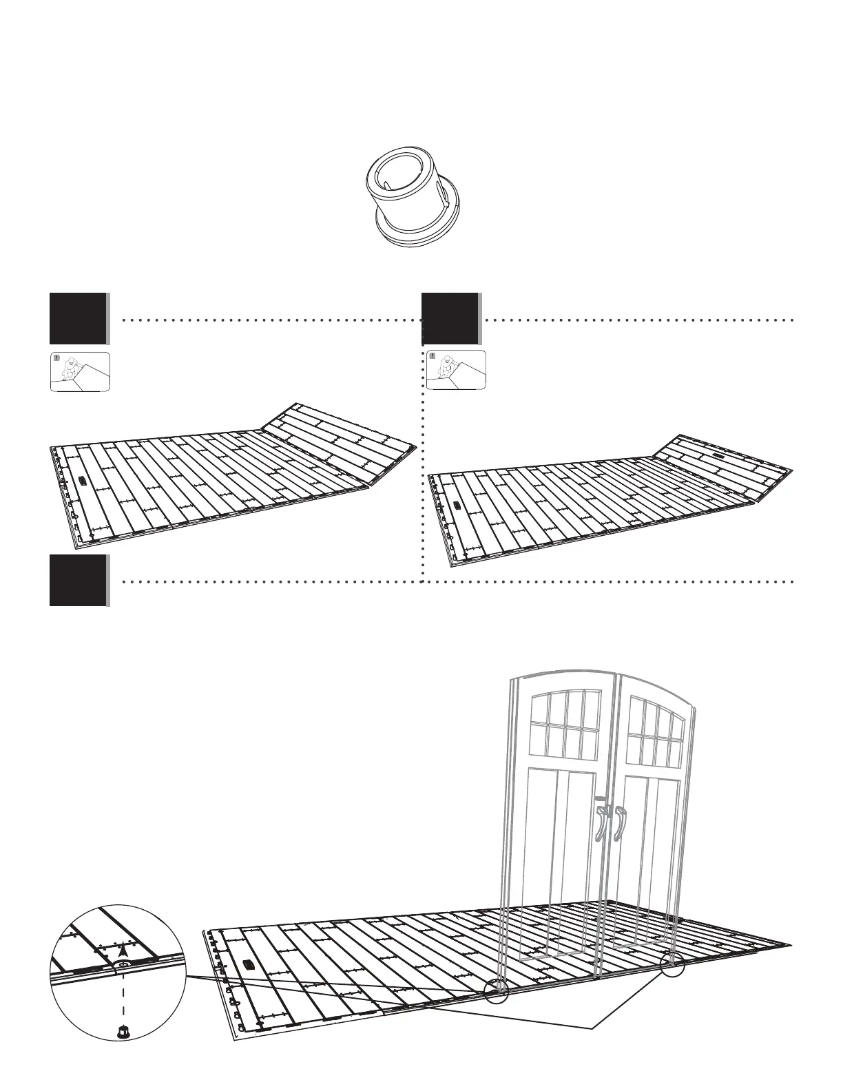 • Decide on which end you would like to install your Doors. Insert Bushings (AHO) through the holes in the Floor. The