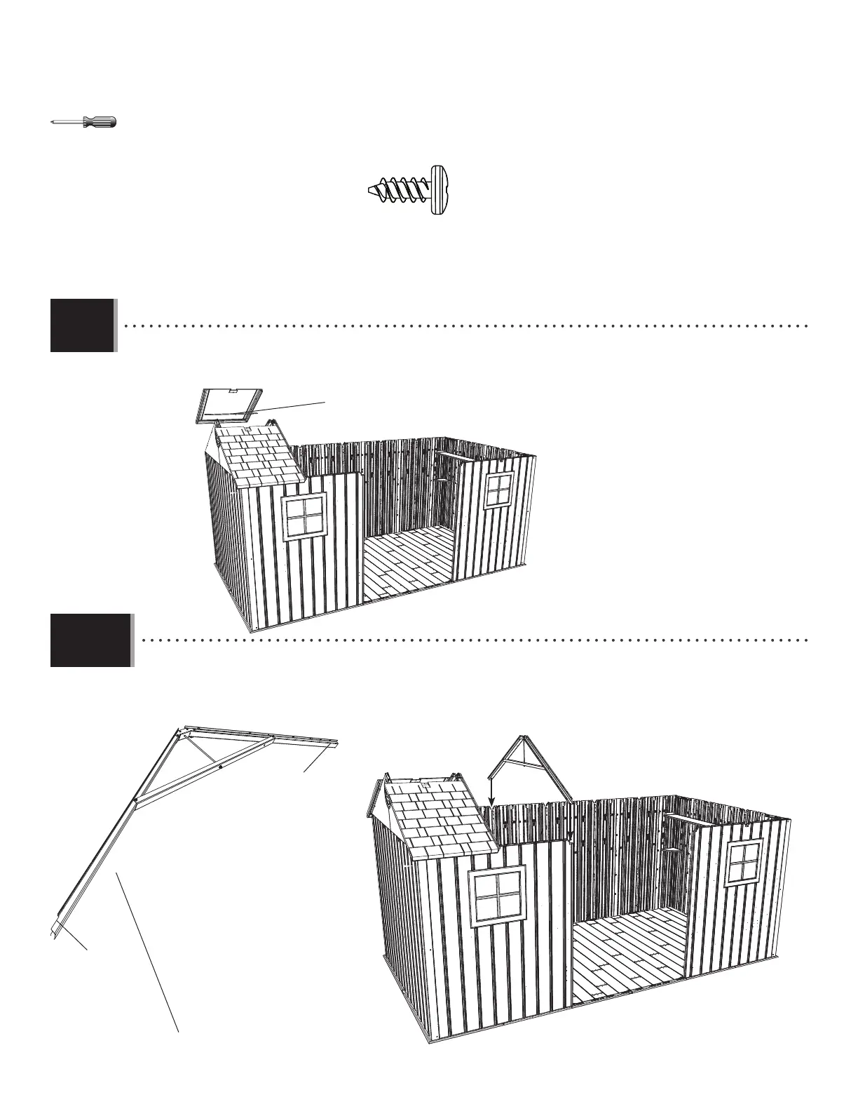 • Mettez une ferme latérale interne sur les encoches dans les panneaux muraux comme illustré.