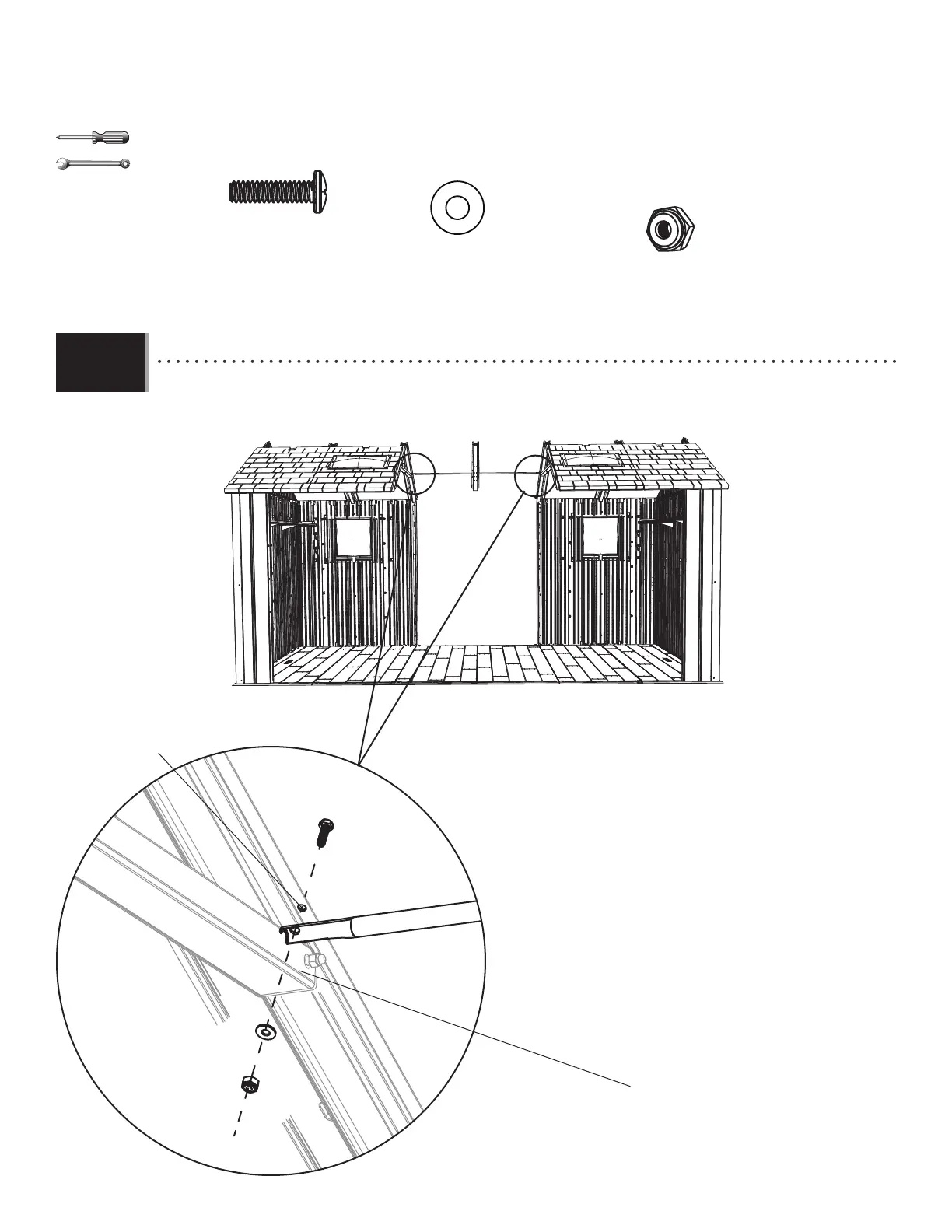 • Attachez bien les extrémités du tube de support aux fermes latéraux à l’aide de la quincaillerie requise.