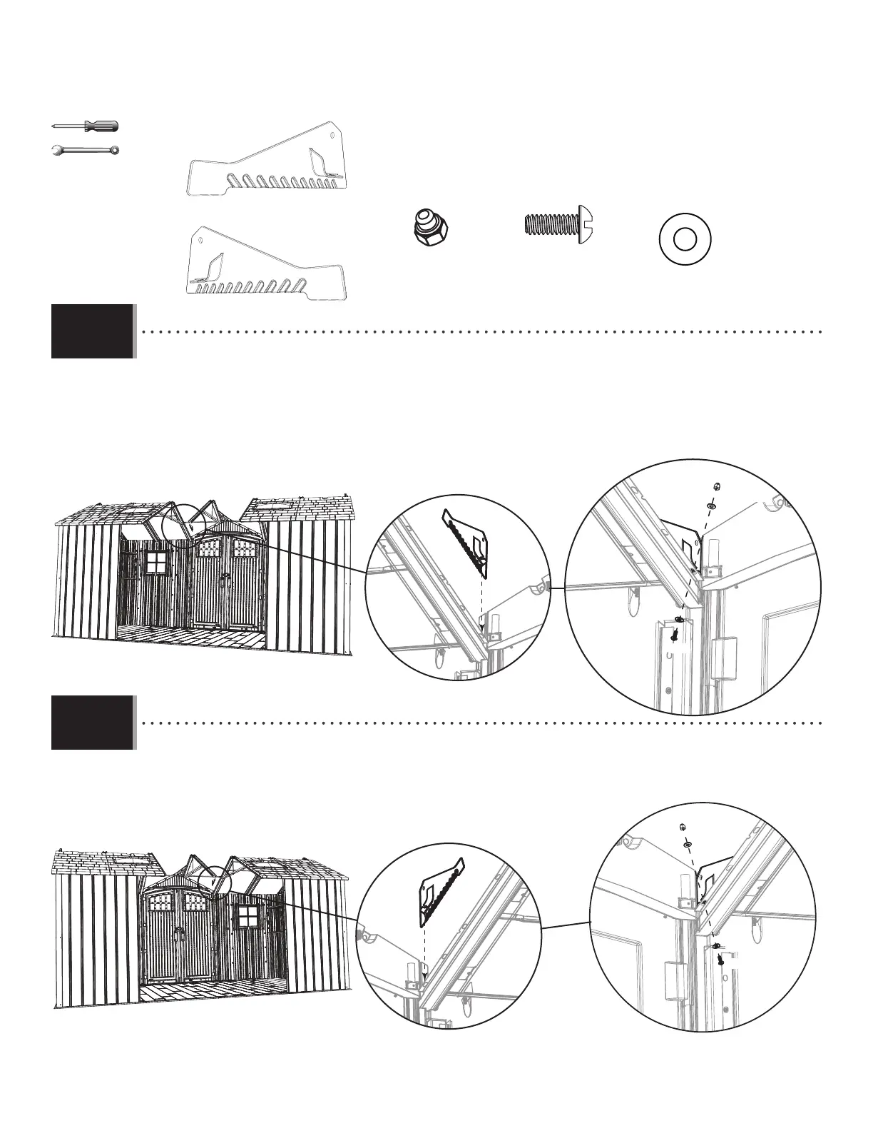 la premier trous dans la ferme comme illustré. Attachez-la bien à la ferme à l’aide de la quincaillerie incluse. Ne