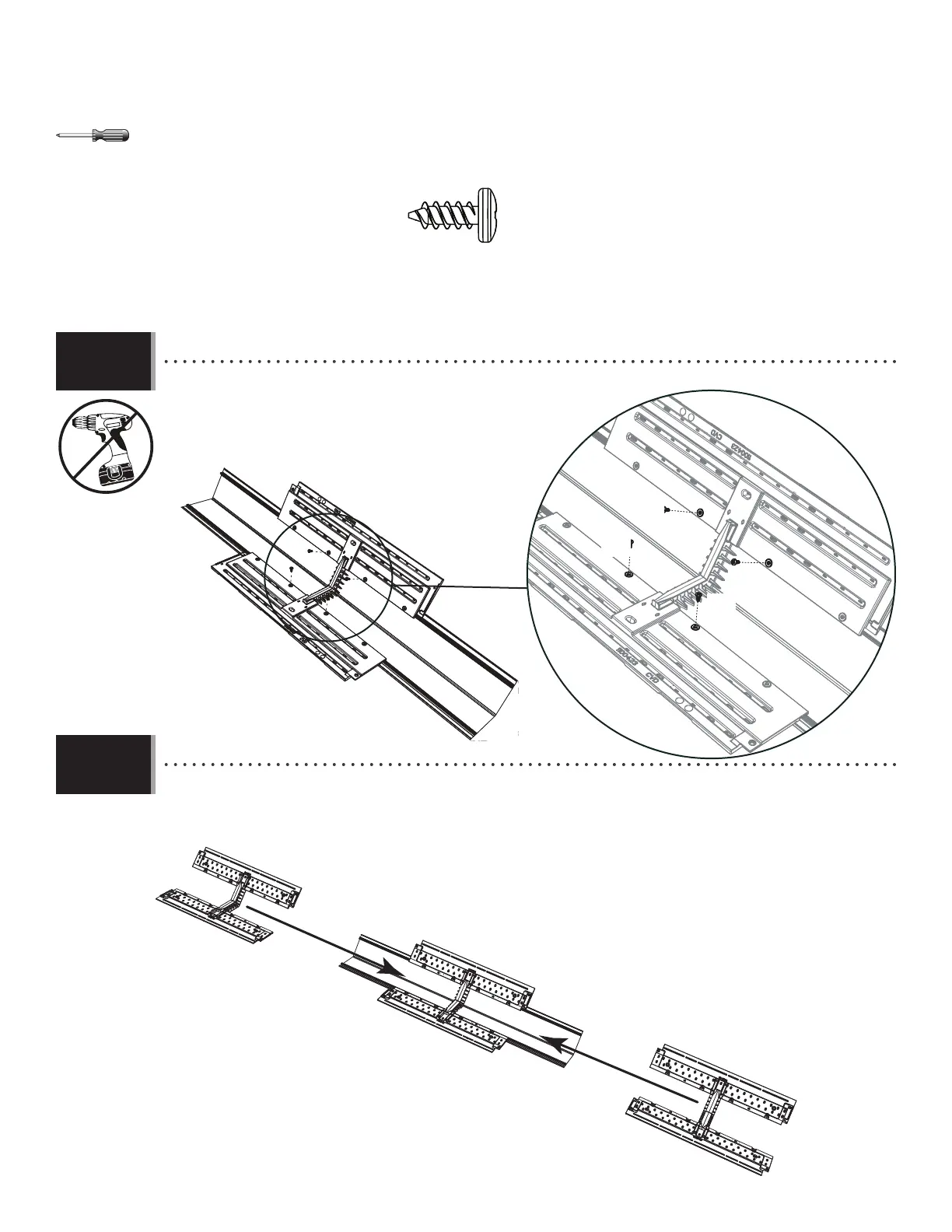 • Secure the Skylights to the Extensions at the four points shown.