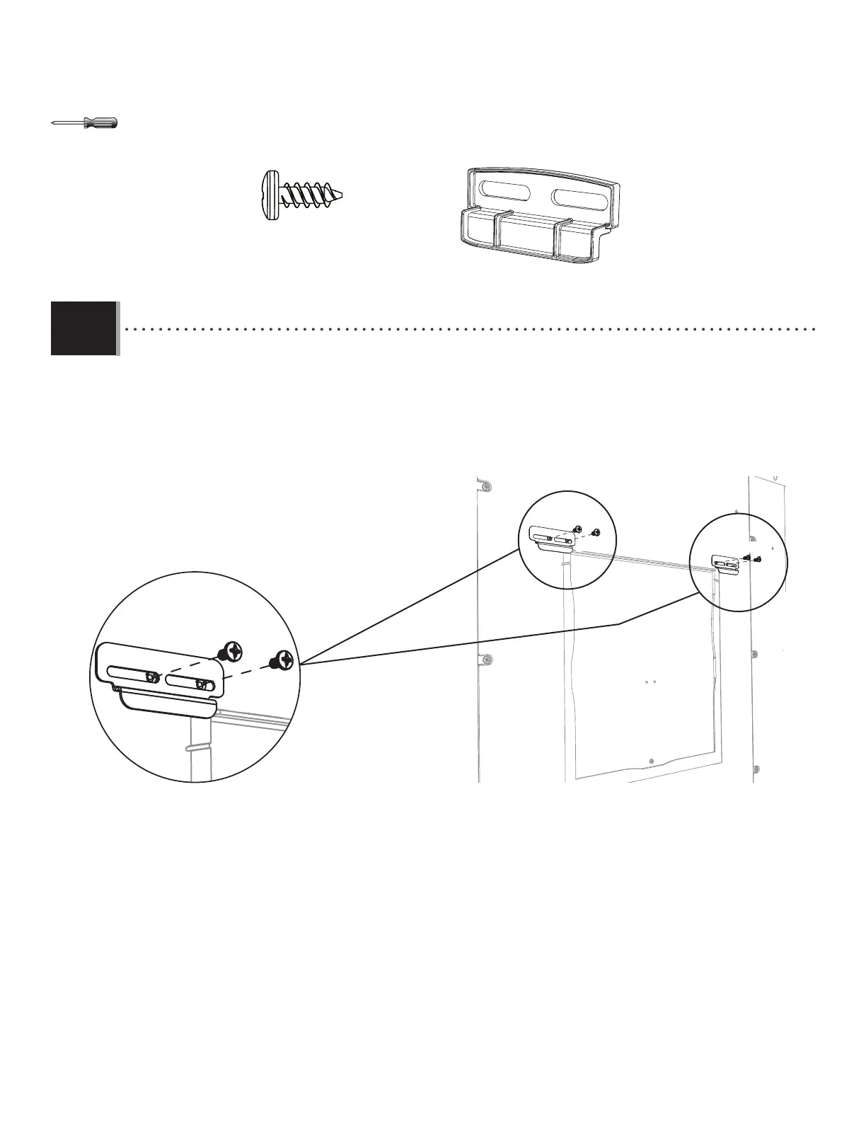 • Attachez les deux (2) loquets (ADY) aux angles supérieurs de l’ouverture du panneau. Le loquet doit se déplacer