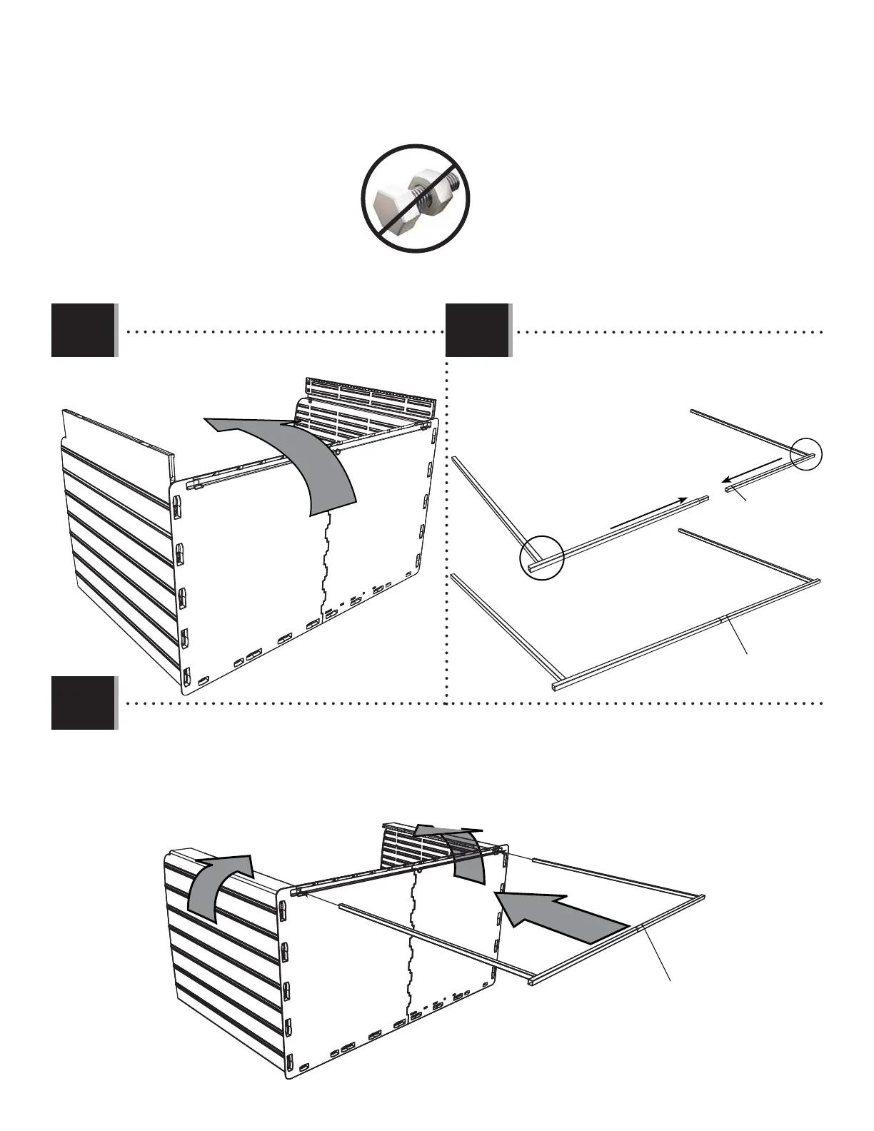 • Bend the Corner Panels as shown. Insert the Tube Support Assembly into the holes in the bottom of the Floor