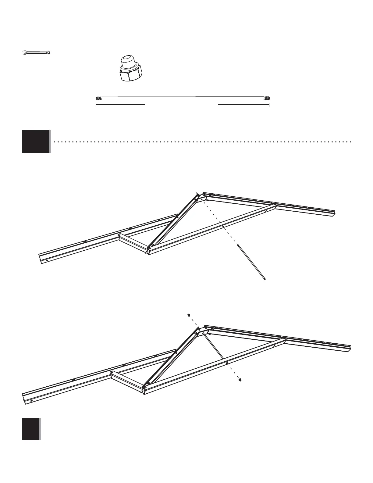 • Slide a Truss Rod (ADH) through the holes in the Brace and Connector. Secure with two Cap Nuts (ADJ).