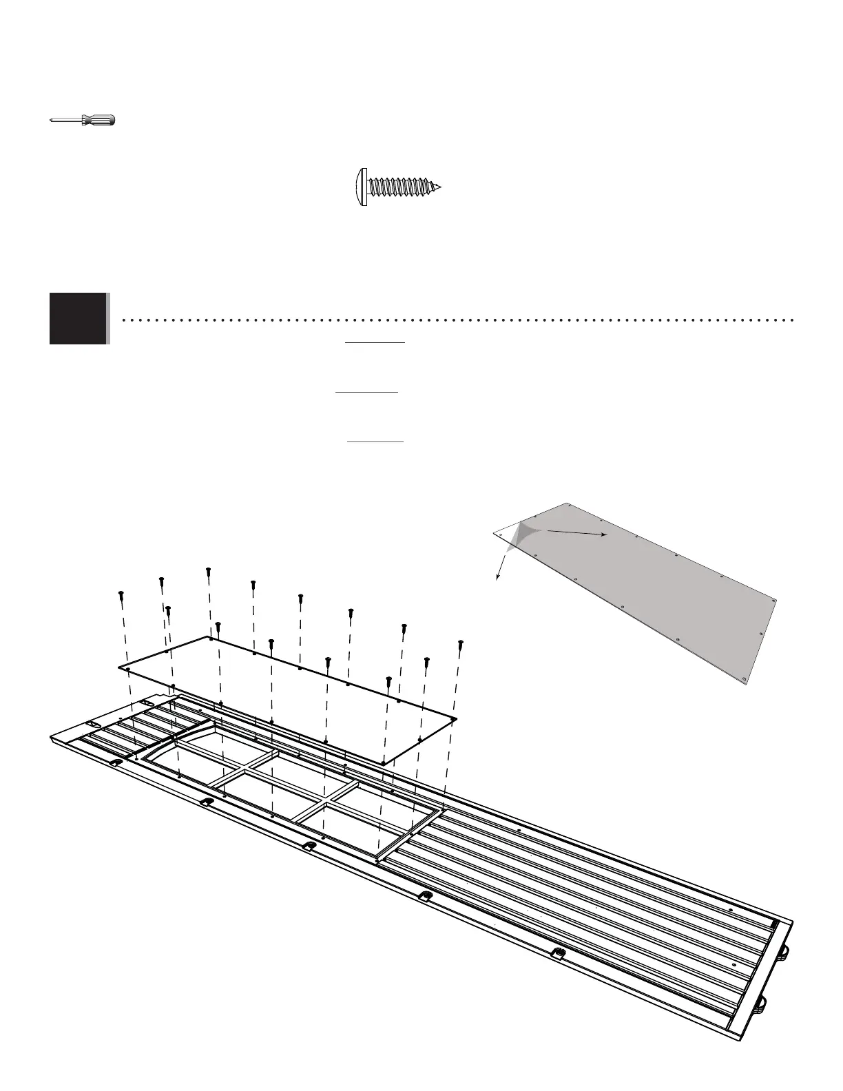 la porte, et, avec douceur, mettez le carreau sur la porte. Fixez le carreau à la porte en utilisant quatorze (14) vis