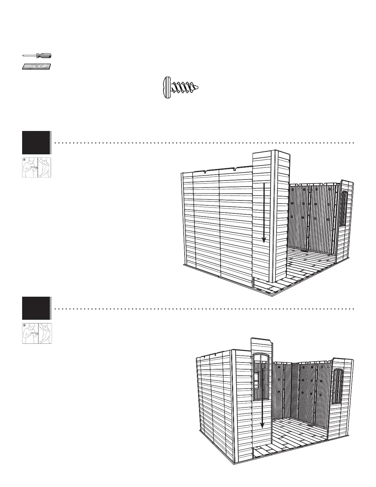 corner of the Floor. Slide the Panel to the left. Secure the two Panels using fi ve (5) Screws (ADZ).