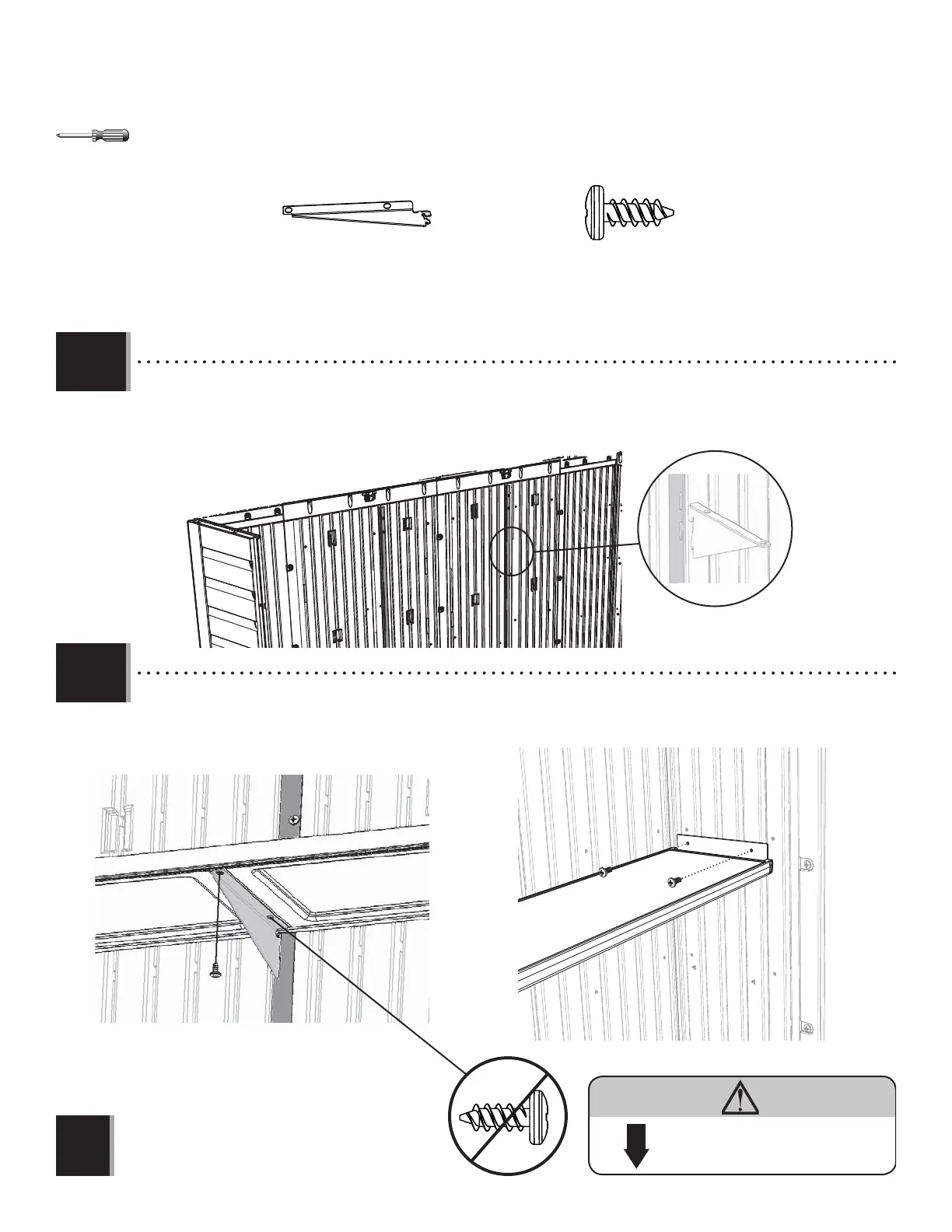 • Attach the Shelf (AFV) to the Corner Wall Panels and Shelf Brackets using six (6) Screws (ADZ).