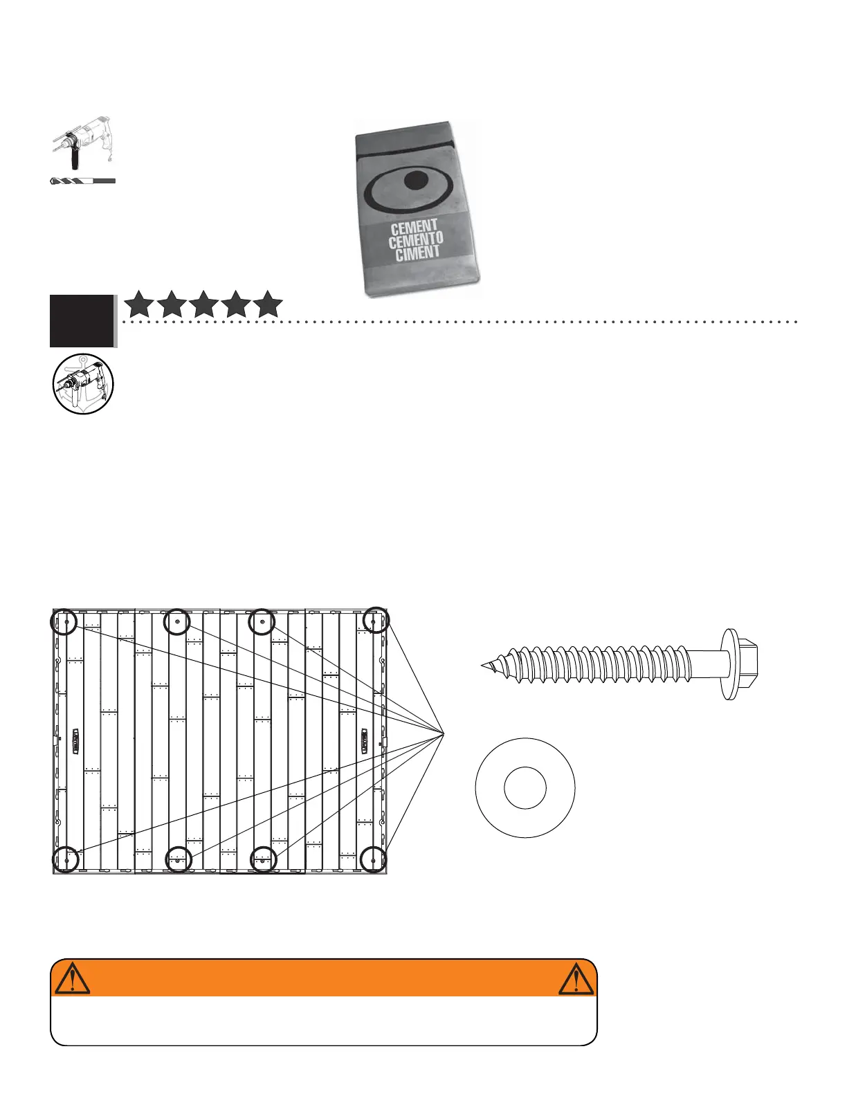 concreto de 10 mm x 5 cm (3/8 in x 2 in) y ocho (8) rondanas de protección de 10 mm x 2,5 cm (3/8 in x 1 in).